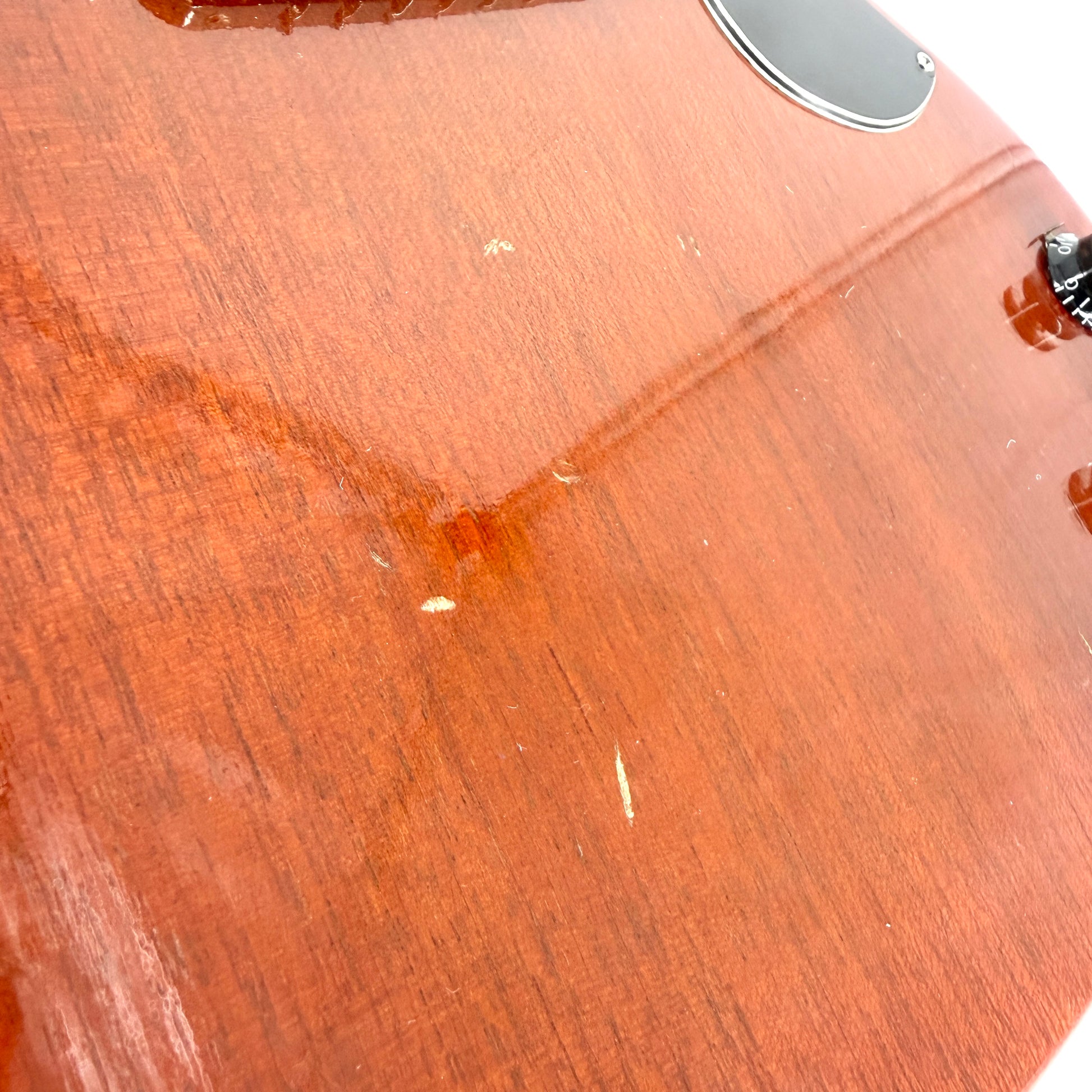 Features include a solid mahogany body and a set mahogany neck with comfortable slim profile, highly figured Brazilian Rosewood fingerboard, 3 in line tuners and an original single dogear P-90 in the bridge position, controlled by a single volume and tone knob. Despite the minimal electronics, the guitar delivers a surprisingly broad tonal palette—from snarling overdrive to clean, biting rhythm tones. The pots have been upgraded and the wraparound bridge has also been upgraded at some stage (the original is included in the case). It also benefits from a refret so this is ready to go for the next lucky owner.