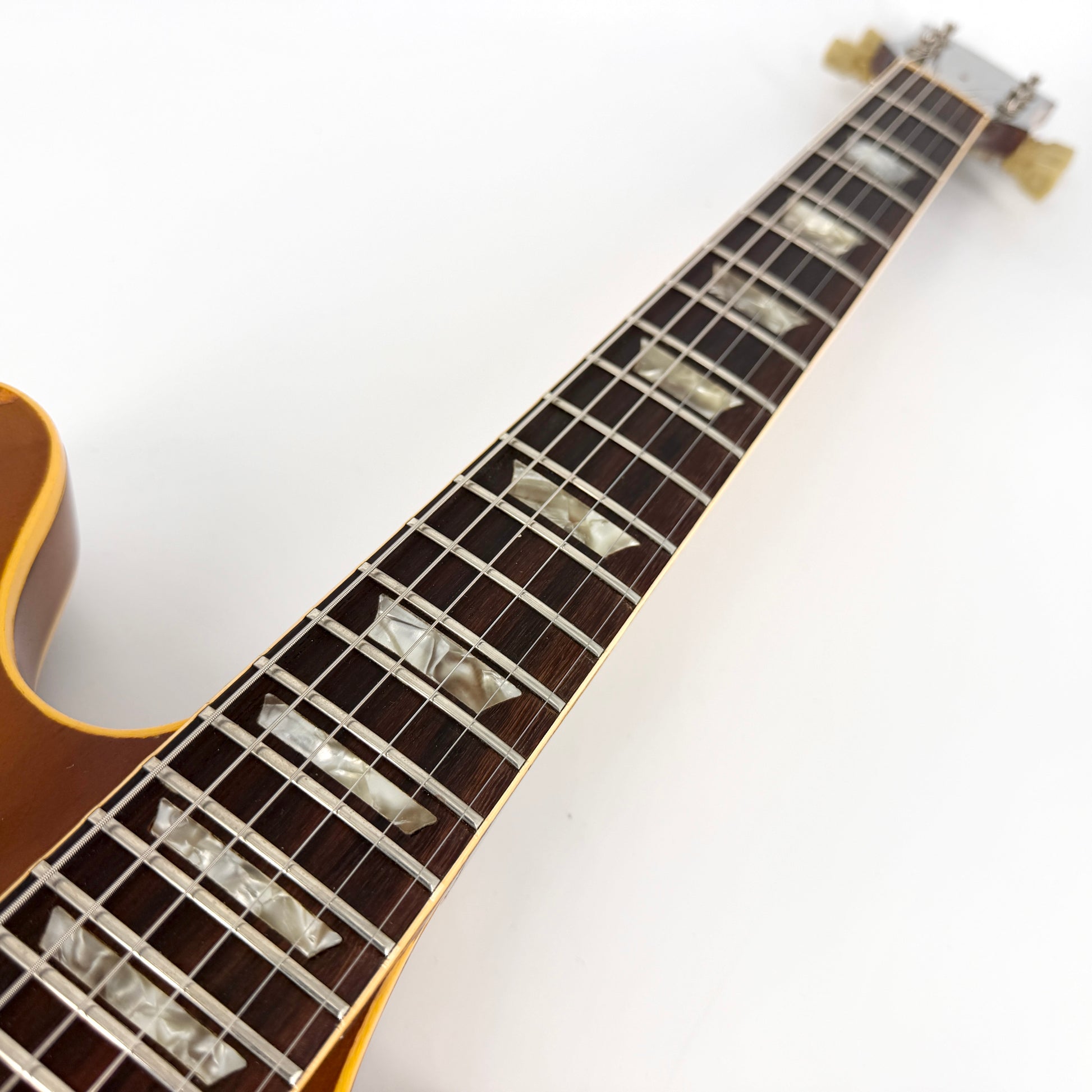 Over time, the finish on this instrument has developed a beautiful patina, showcasing natural relicing and lacquer checking. The aging process has enhanced its unique character, making it truly one-of-a-kind. It has some wear to some of the frets but purely cosmetic and not affecting playability at all. Everything works as it should without issue.