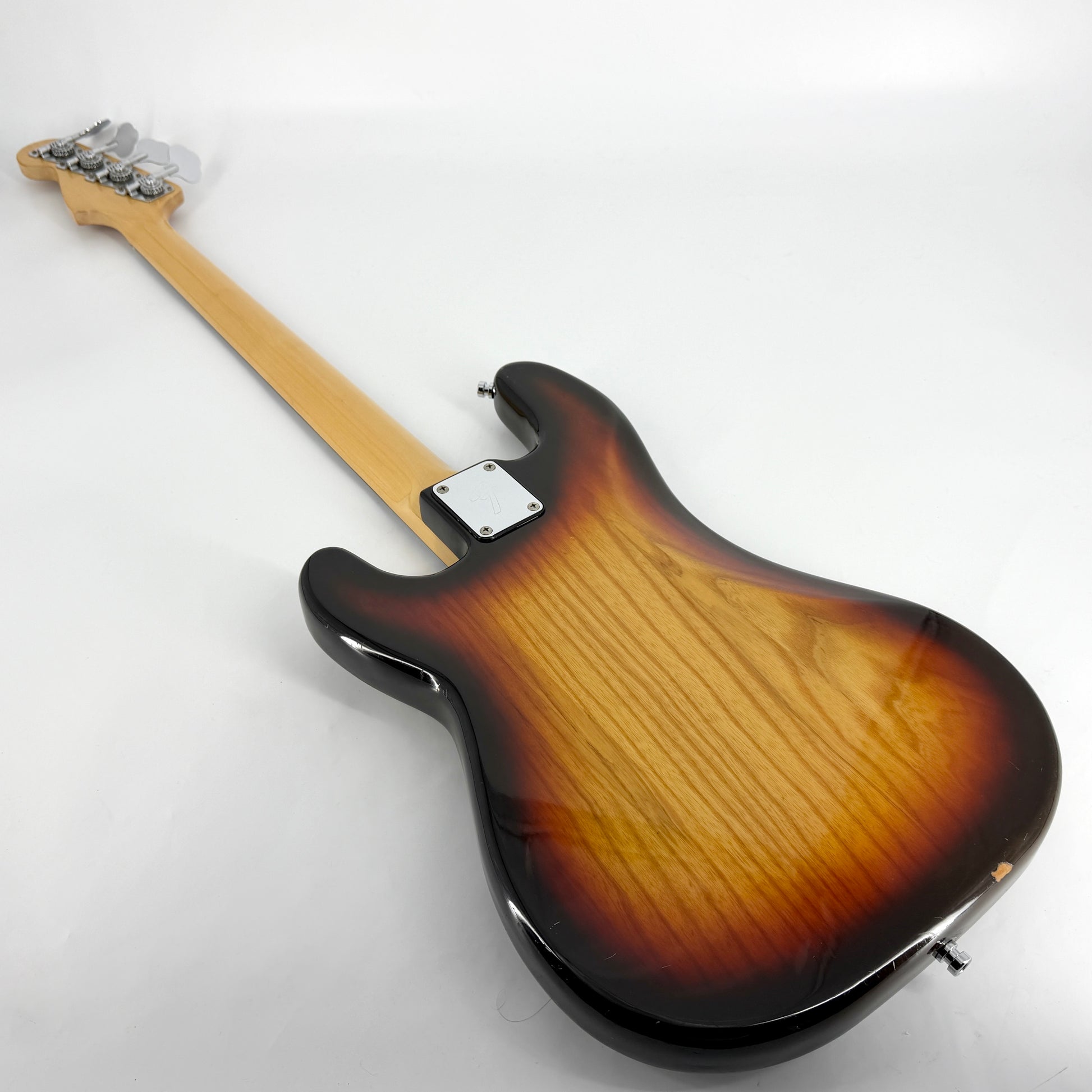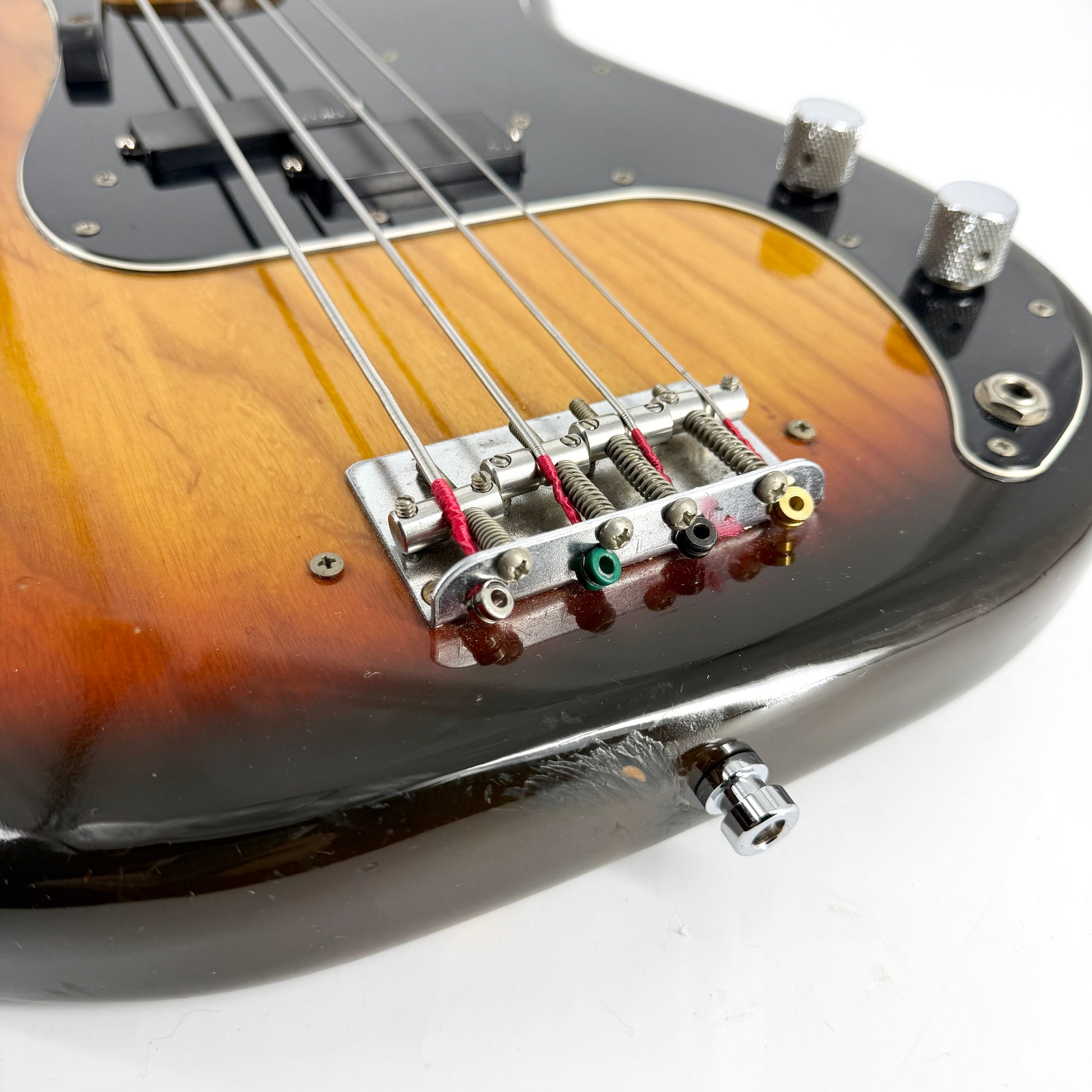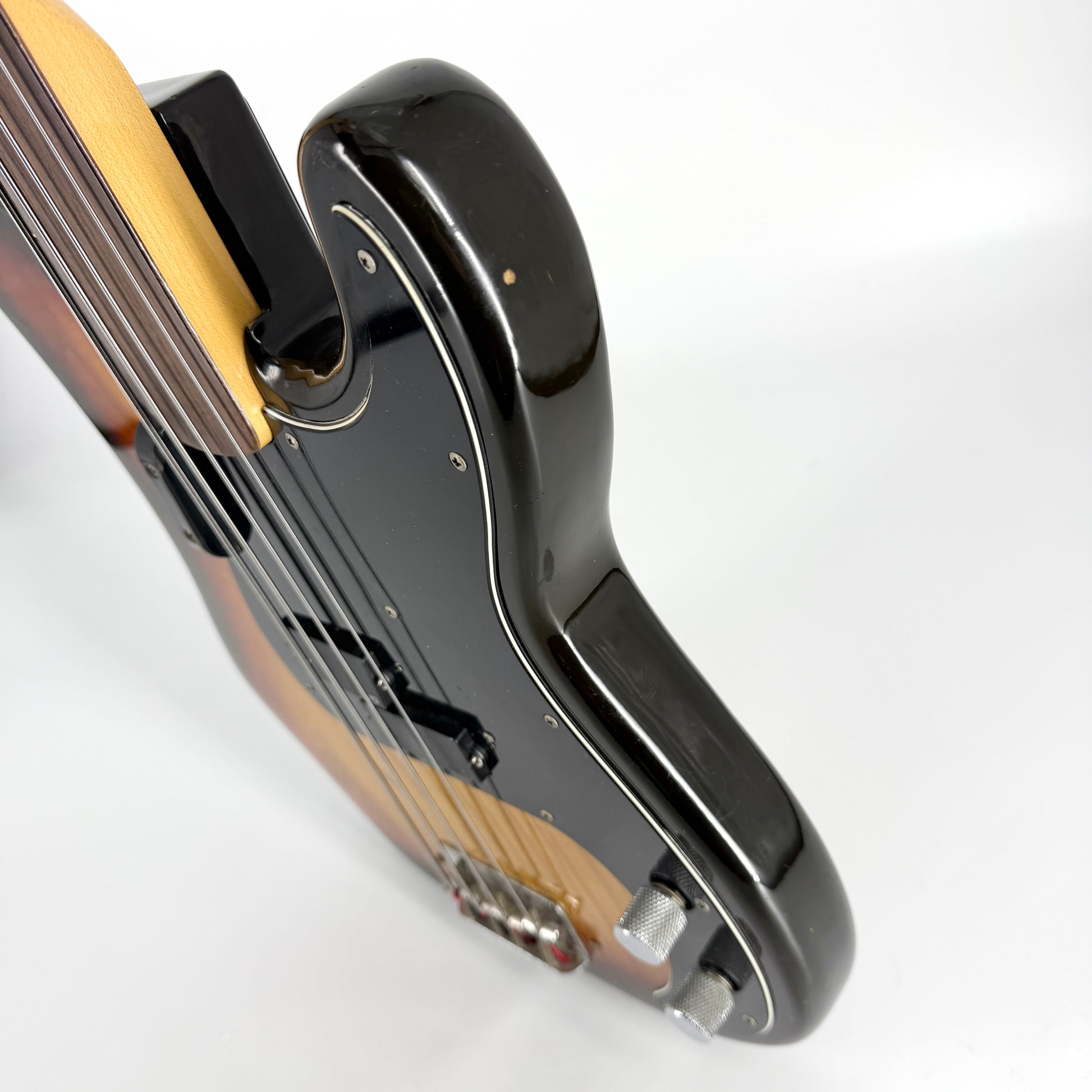 Vintage Fender fretless Precision bass from the late 1970s, finished in Sunburst.