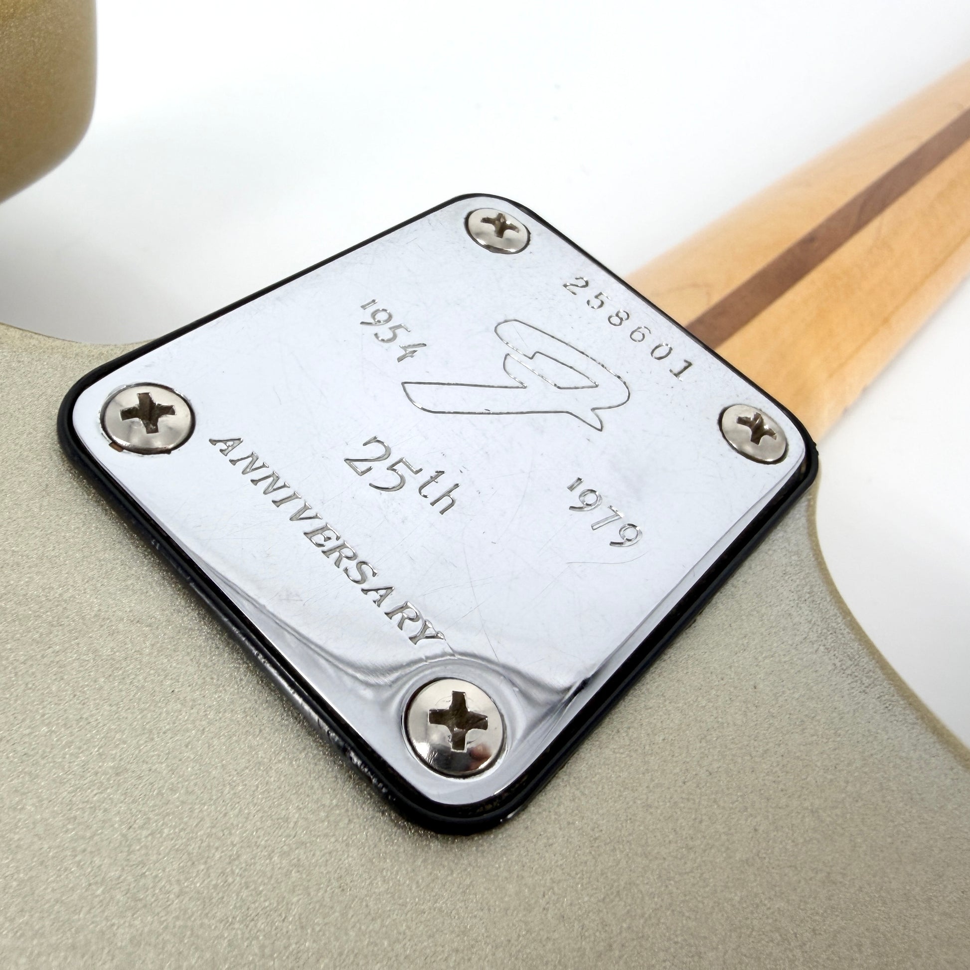 In 1979, Fender celebrated the 25th anniversary of the Stratocaster (introduced in 1954) with the first “anniversary” instrument, and the first Fender instrument to be issued in a pre-determined and numbered, limited quantity. This is an absolutely exceptional example with very little in the way of blemishes (we've exaggerated some on our photos to exaggerate them as they are barely visible otherwise). It's certainly a guitar that will appeal to both collectors and players and is the cleanest example for sale in the UK, despite being priced significantly lower than other examples with more wear.