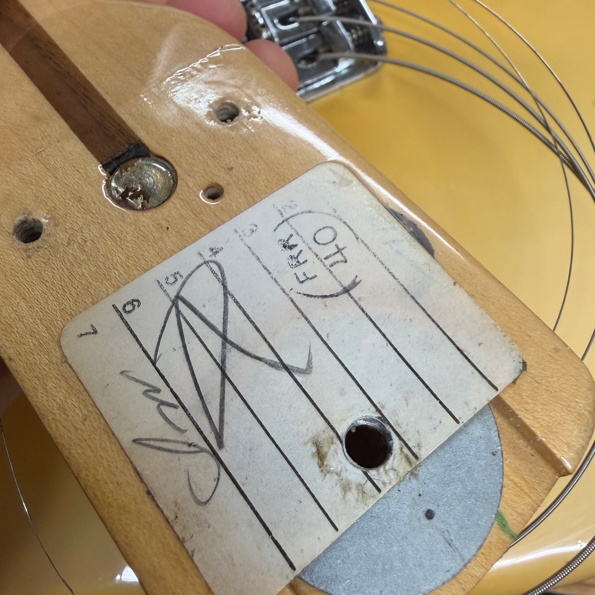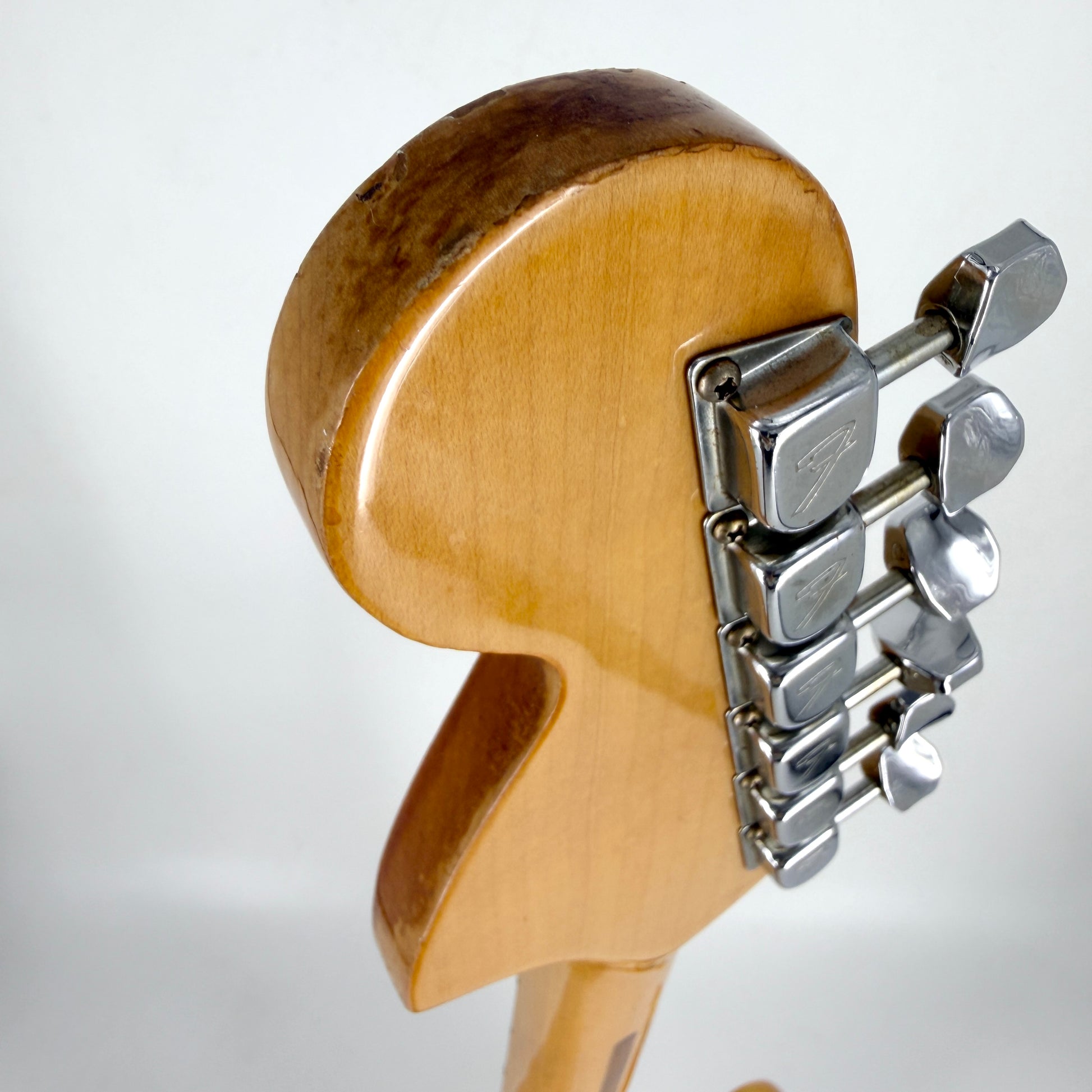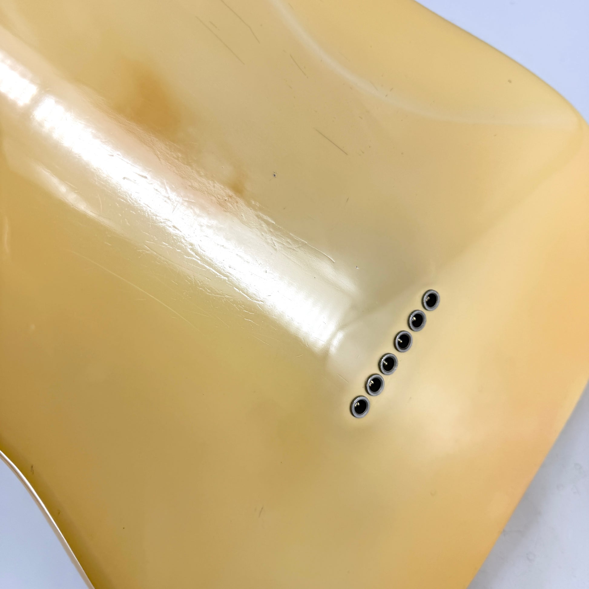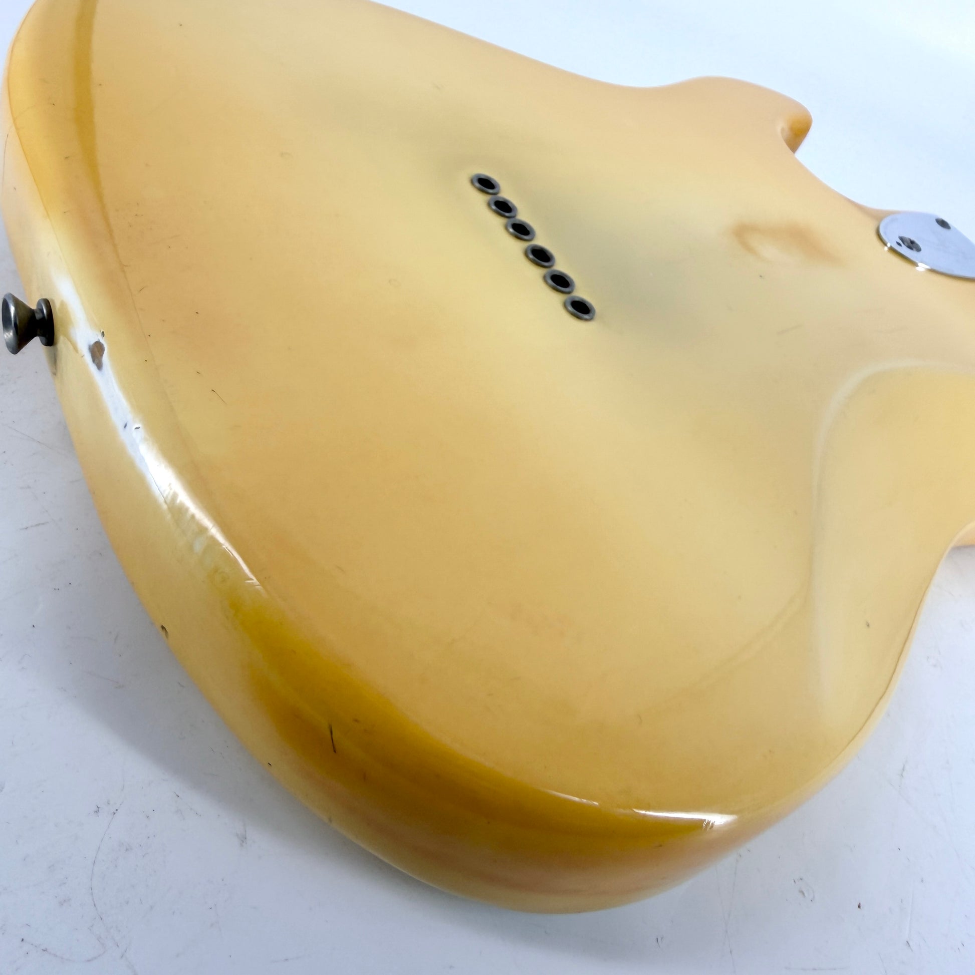 Vintage USA strat finished in Olympic White but has yellowed and aged beautifully over the years go a vintage white/yellow tone. The serial number dates this to 1979, but we suspect it to be a 1980 build given neck stamps.