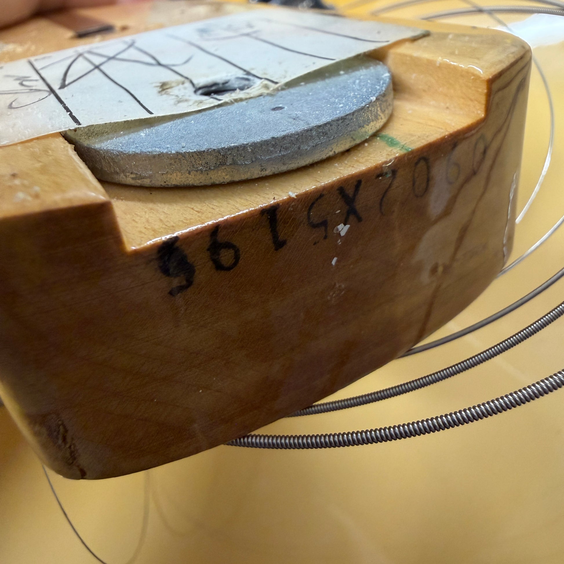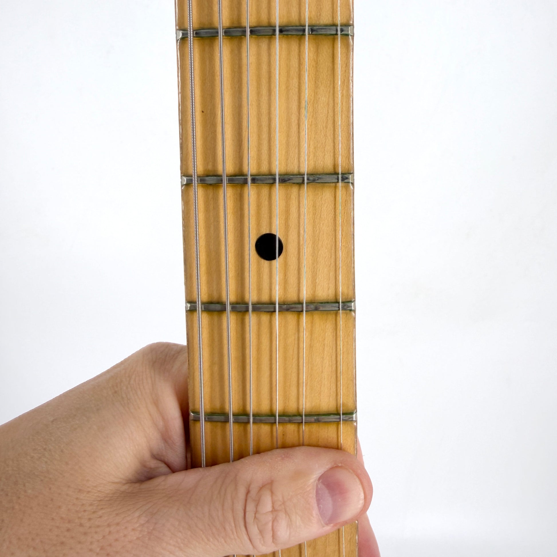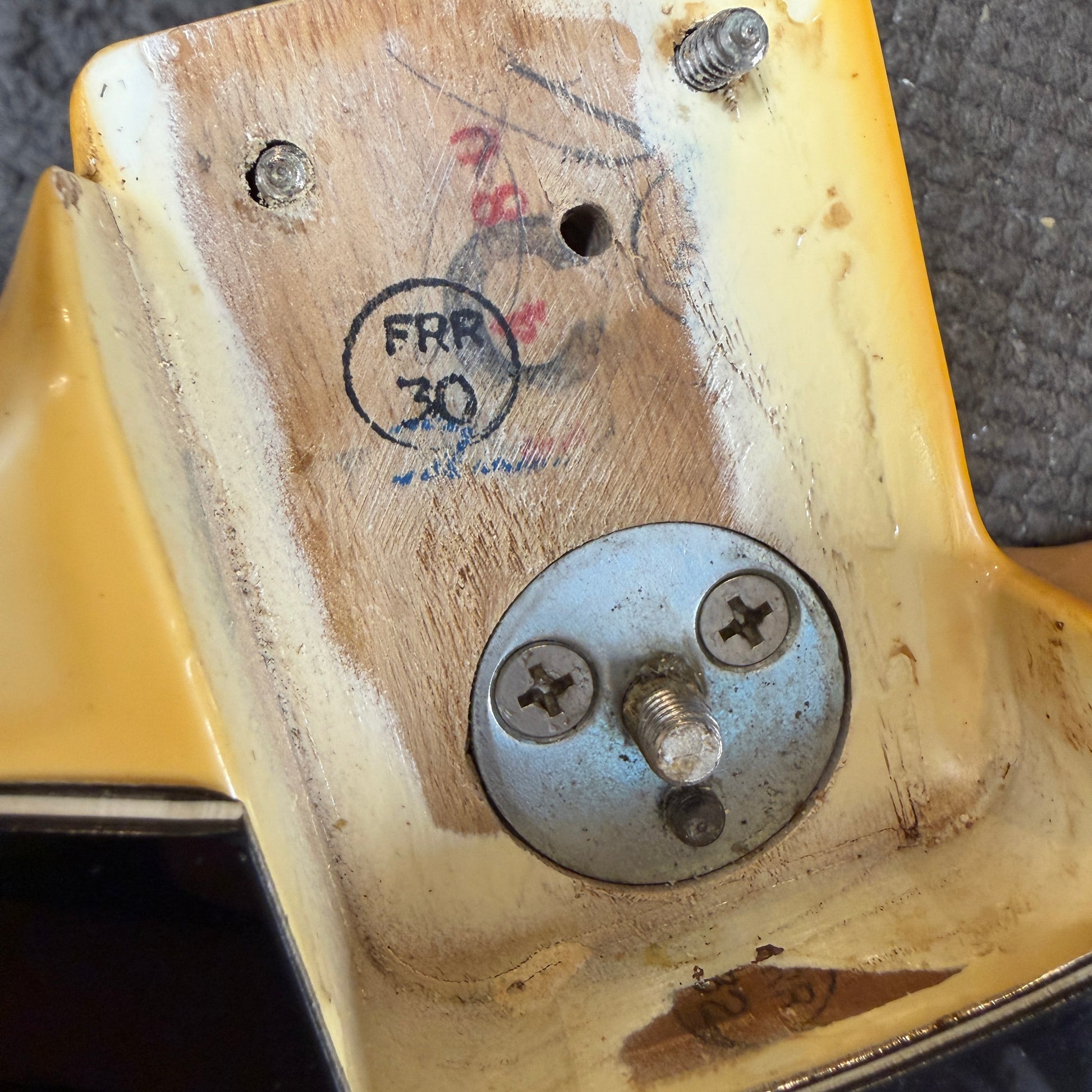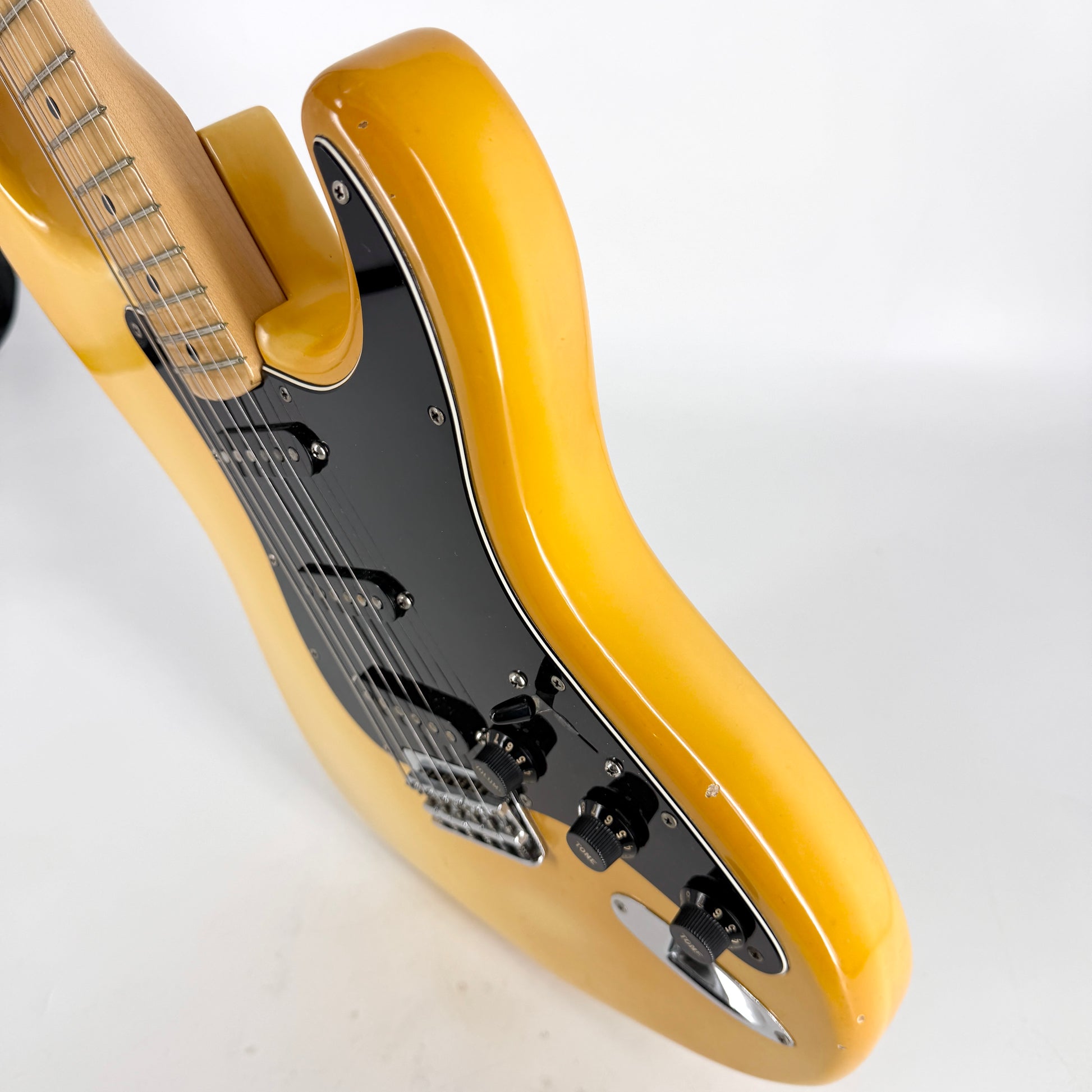 Vintage USA strat finished in Olympic White but has yellowed and aged beautifully over the years go a vintage white/yellow tone. The serial number dates this to 1979, but we suspect it to be a 1980 build given neck stamps.