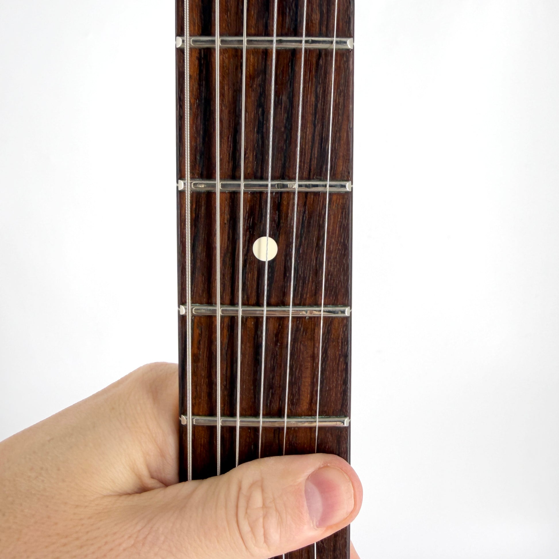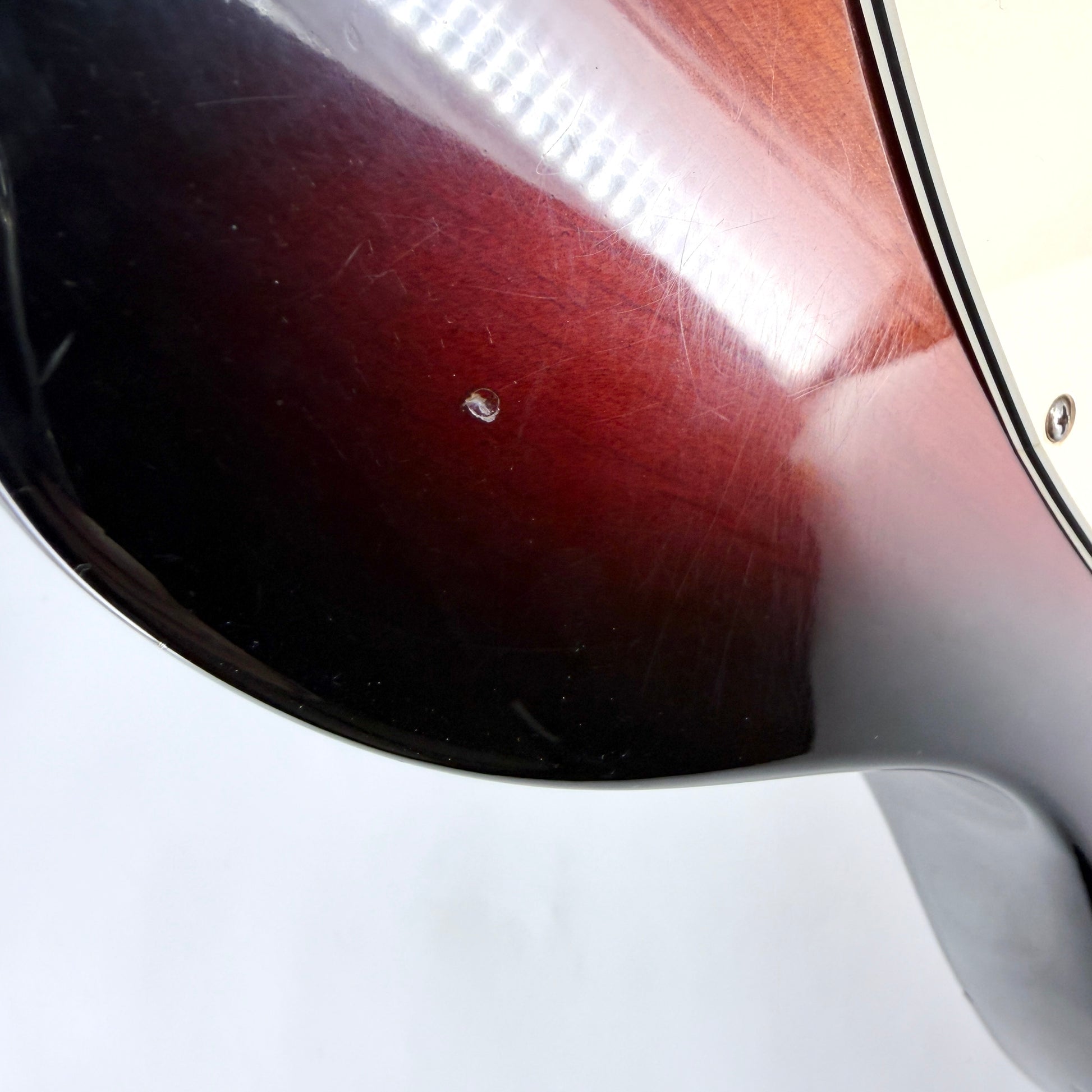 Very good condition for its age with some signs of wear and blemishes (many of which are barely visible unless shining light on them – as we have done in our photos to exaggerate them). A few blemishes on the neck, but nothing that is too obvious when playing. Everything works as it should without issue.