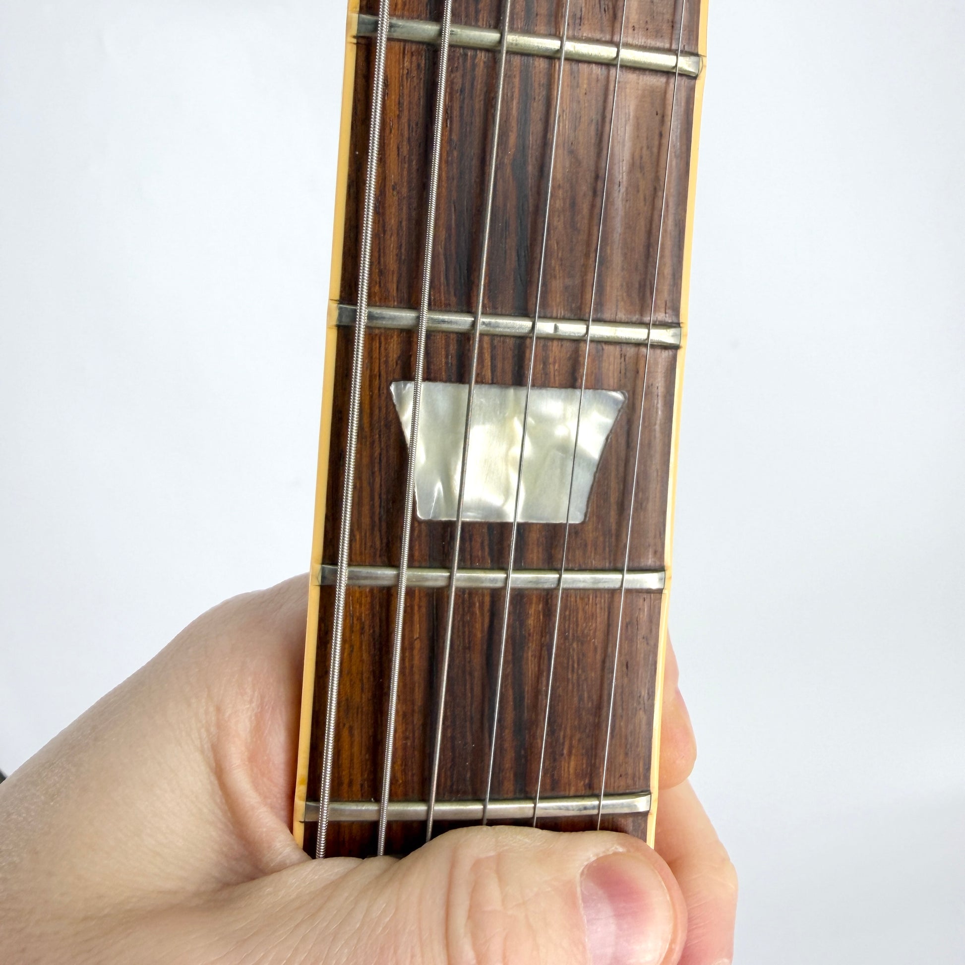 It's in very good condition for a 36 year old vintage guitar, with some wear and blemishes, but no breaks or repairs. It's starting to age beautifully with some barely visible lacquer checking lines on close inspection and there's a couple of marks on the bottom of the headstock from a wall hanger. The frets have some minor wear as you'd expect but only cosmetic and not affecting playability at all - there's plenty of life left in them. Everything works as it should without issue.
