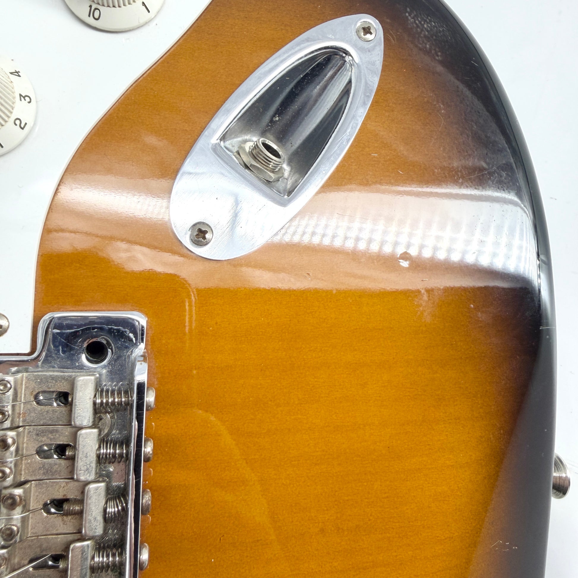 The quality 90s Japanese Fenders is superb and this one has been given a significant tonal upgrade with premium hand-wound Radio Shop Chris Buck '57 pickups (£250+ a set) which sound absolutely fantastic. It features a Basswood body, Maple neck with comfortable medium soft V profile, thin frets, 7.25 radius and vintage style tremolo/tuners. It comes with its trem-arm and a brand new gig bag for transportation.
