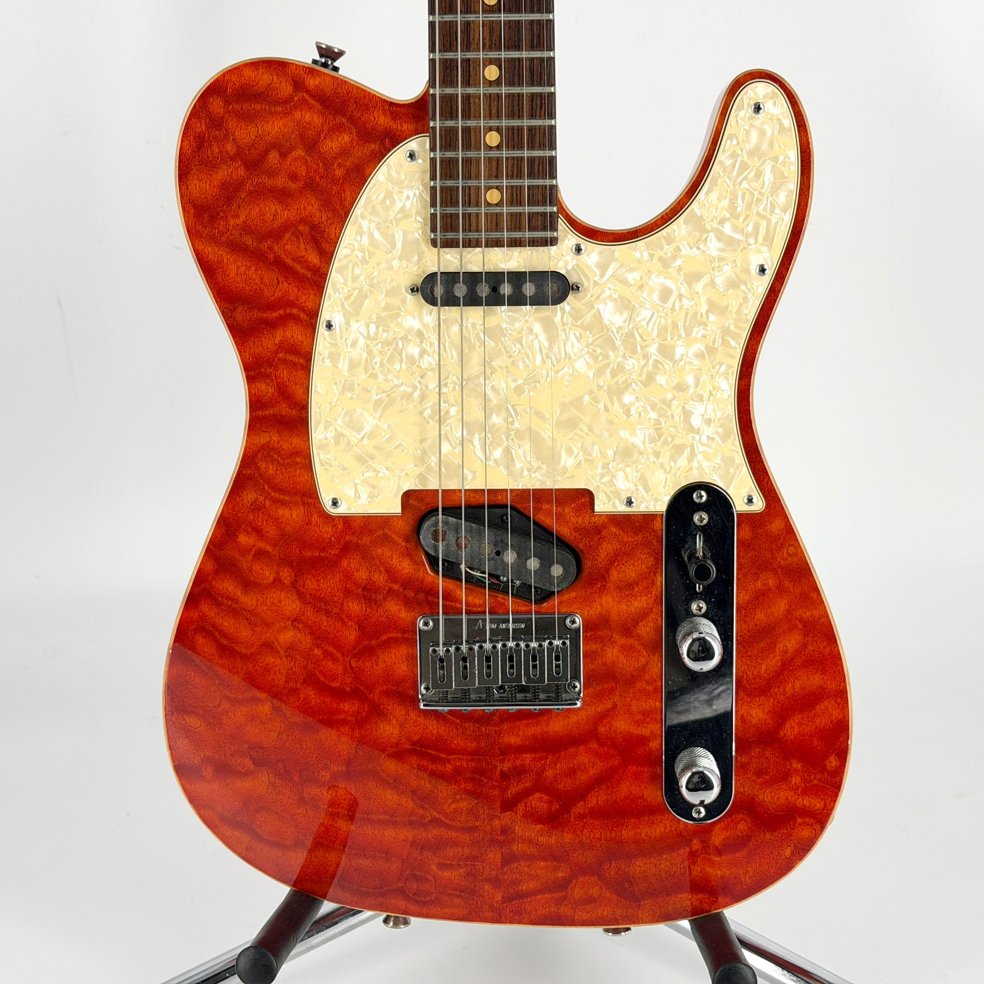 Stunning 'telecaster-style' Tom Anderson finished in a 'Gretsch-inspired' 6120 Orange quilt finish and super-lightweight at only (6lb 4oz).