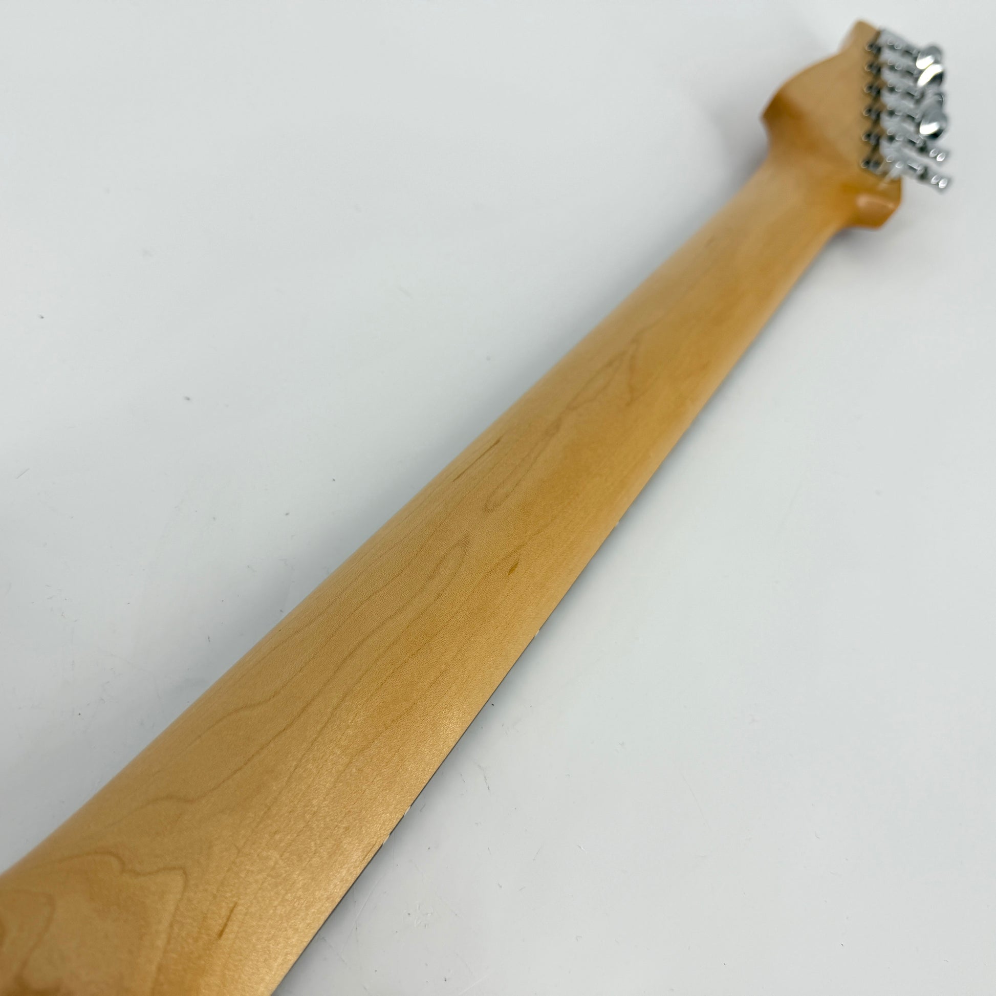 It features a Basswood body with quilted Maple top and binding, a Hard Rock Maple neck with a comfortable slim-medium profile, heavy frets, Buzz Feiten tuning system, matching painted headstock, fixed bridge, and Grover tuners.