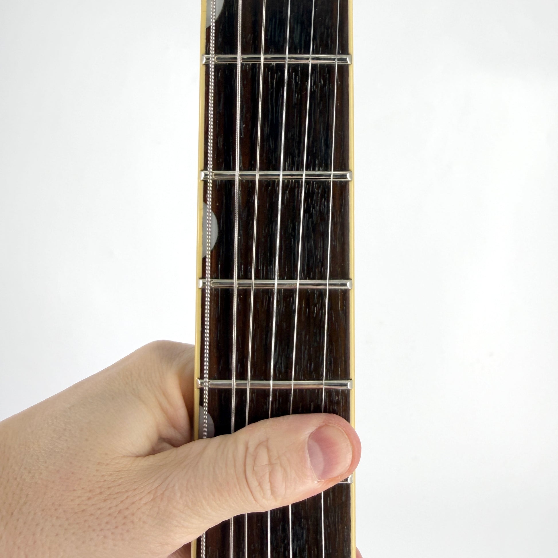 In exceptional condition for a 26 year old guitar with no dings and just a couple of exceptionally minor surface blemishes on very close inspection that wouldn't show up on camera, and as you'd expect on any black used guitar. The frets are in great condition with minor signs of use as pictured.