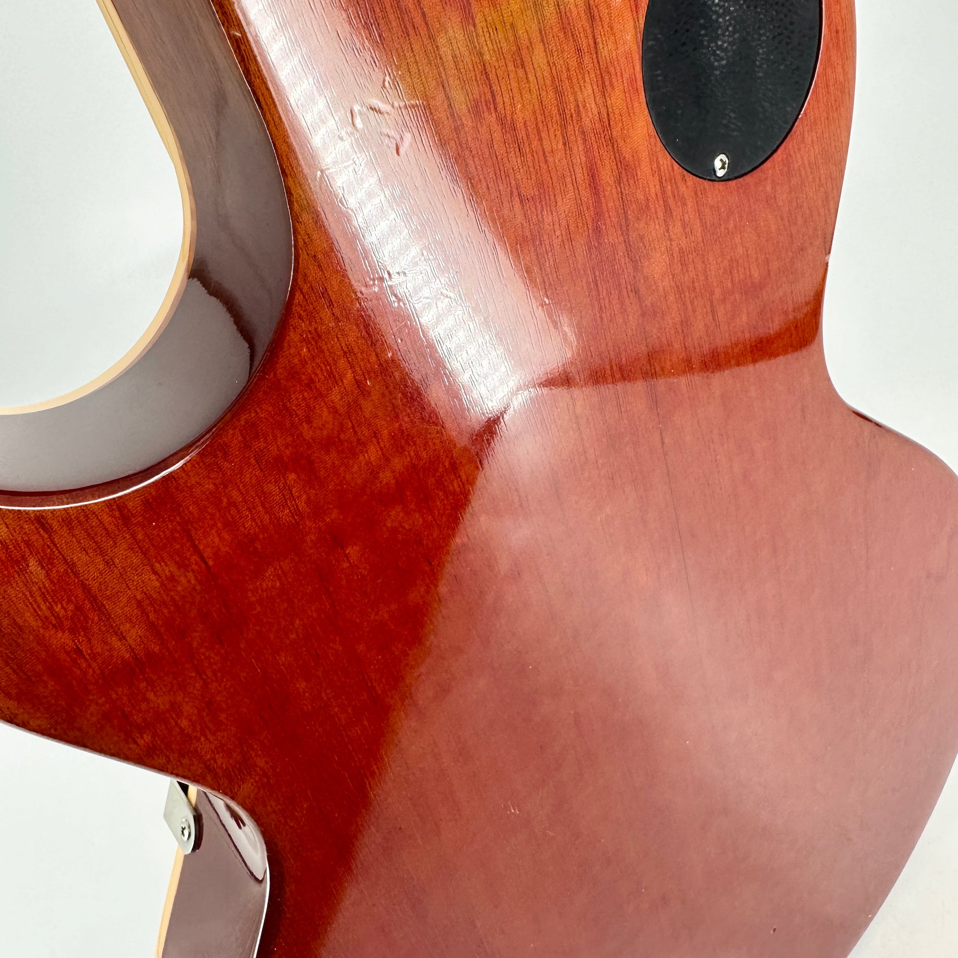 Top of the line Custom Shop '59 reissue VOS finished in Iced Tea nitro and with a stunning highly-figured flame top. We've included a couple of images in natural light as this better showcases its flames.