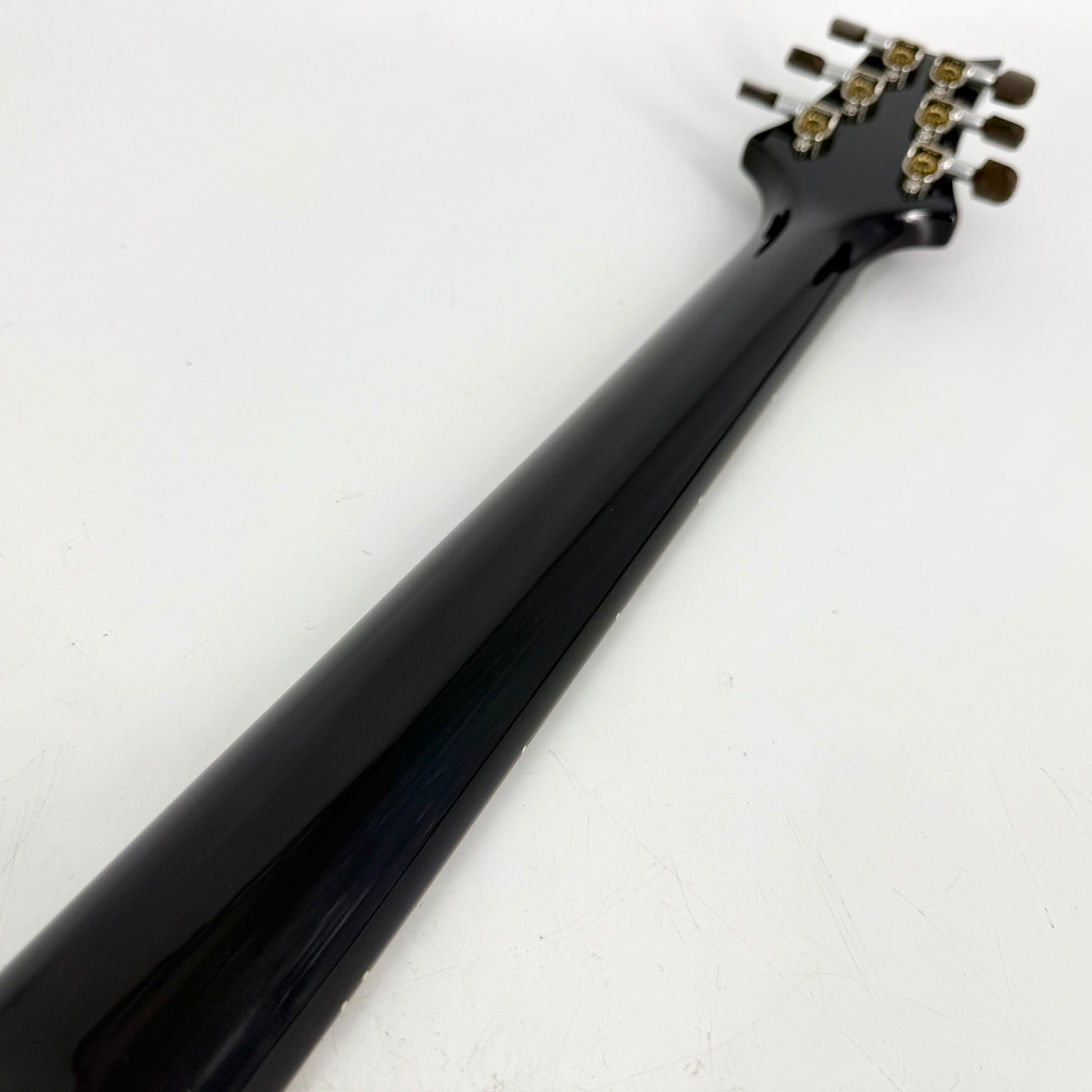 The Mahogany neck plays exceptionally well, with the 'Pattern Regular' profile filling the hand nicely without being at all cumbersome. Certainly, the profile is thick enough to sustain a firm grip when chord playing whilst remaining slim enough for fast articulate melodic lines. The Rosewood fingerboard is pleasant under the fingers, and with its 10" radius is practical for a wide range of styles and techniques. The sculpted neck heel, along with the cutaway and signature PRS chamfered horn ensure unobstructed access to the upper register for soloing. The pickup surrounds and tuner buttons have both been upgraded for aesthetic purposes, but the originals are included in the case and are easy to switch back if preferred.
