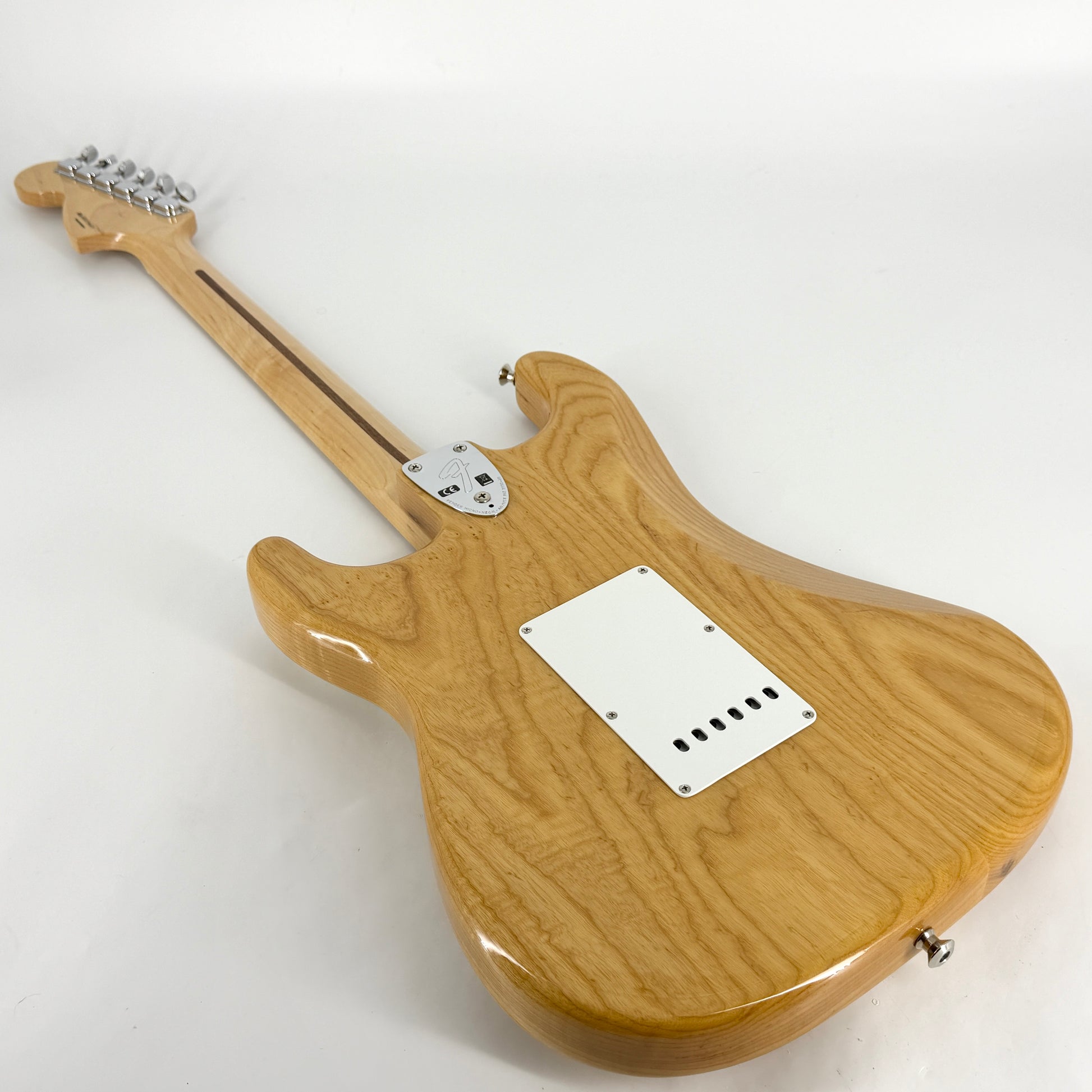 The U shaped neck profile is slightly different to the more common C shape & Fender have used the same 3 bolt neck plate design that was used throughout most of the 70s on US built Strats. It has a beautifully figured Ash body, a 7.25" radius neck, vintage style tremolo, F stamp tuners, 70's headstock with bullet truss rod.