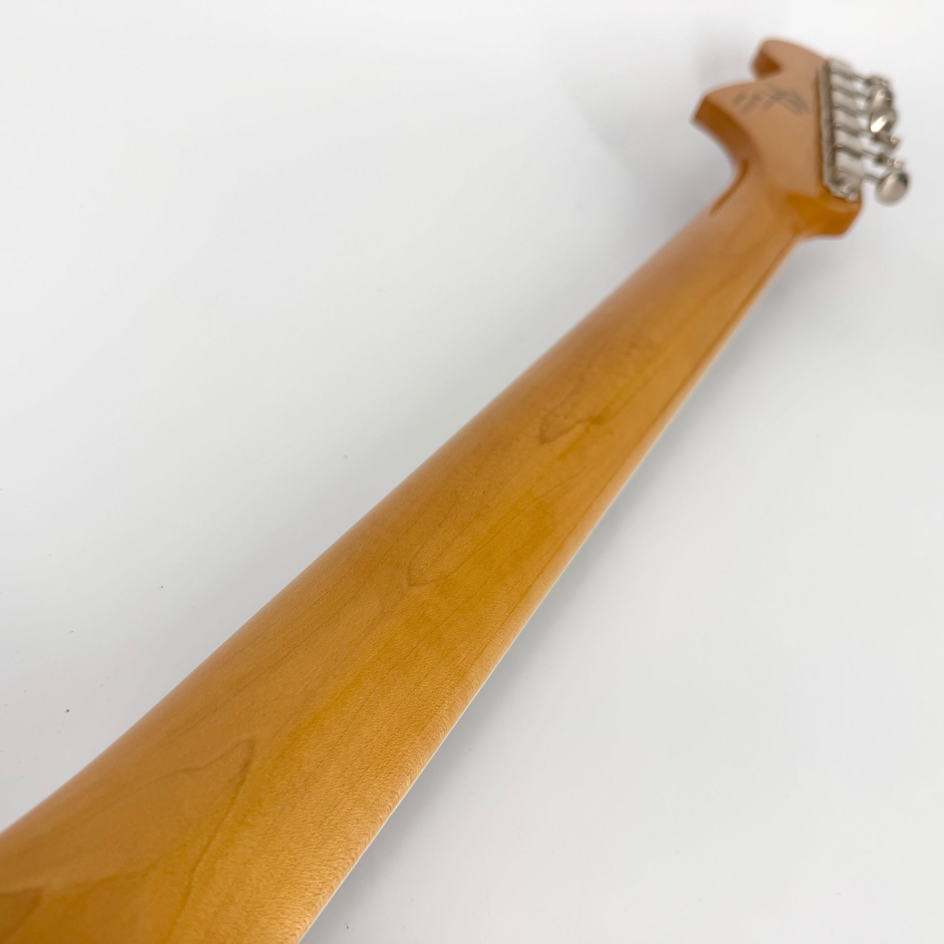 The spec includes an Alder body that is contoured for maximum comfort, Maple neck with comfortable ‘C’ medium profile, bound Rosewood fingerboard with 7.25” radius, block inlays, matching painted headstock cast sealed tuners, vibrato trem, mustang style bridge and 2x premium American Vintage ’65 Jazzmaster single-coils pickups for exceptional tone.