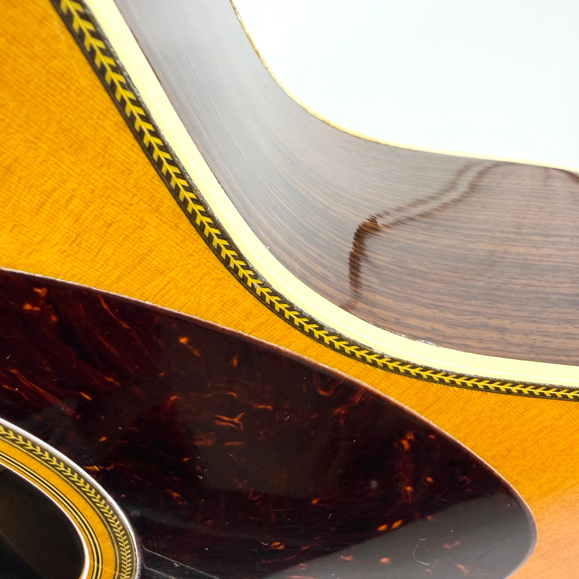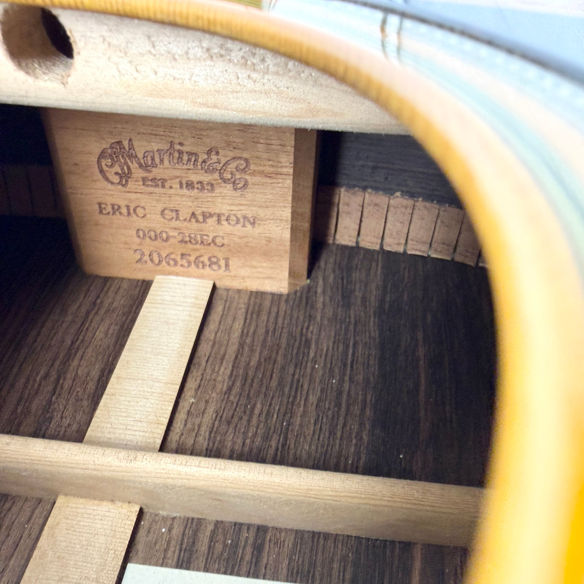 The premium specs include a Sitka Spruce top, Indian Rosewood back and sides, a comfortable Mahogany neck with a comfortable V profile and standard taper, a nut width of 1 3/4", Ebony fingerboard, open-gear tuners, an Ebony bridge, fine Herringbone rosette with multi-stripe, zig-zag stripe on the reverse, decorative Abalone fretboard inlays with Clapton signature inlay at end of the fretboard, and a scalloped x bracing pattern boosting bass response and volume. It comes complete with its original hardshell case to keep it protected, and its paperwork.
