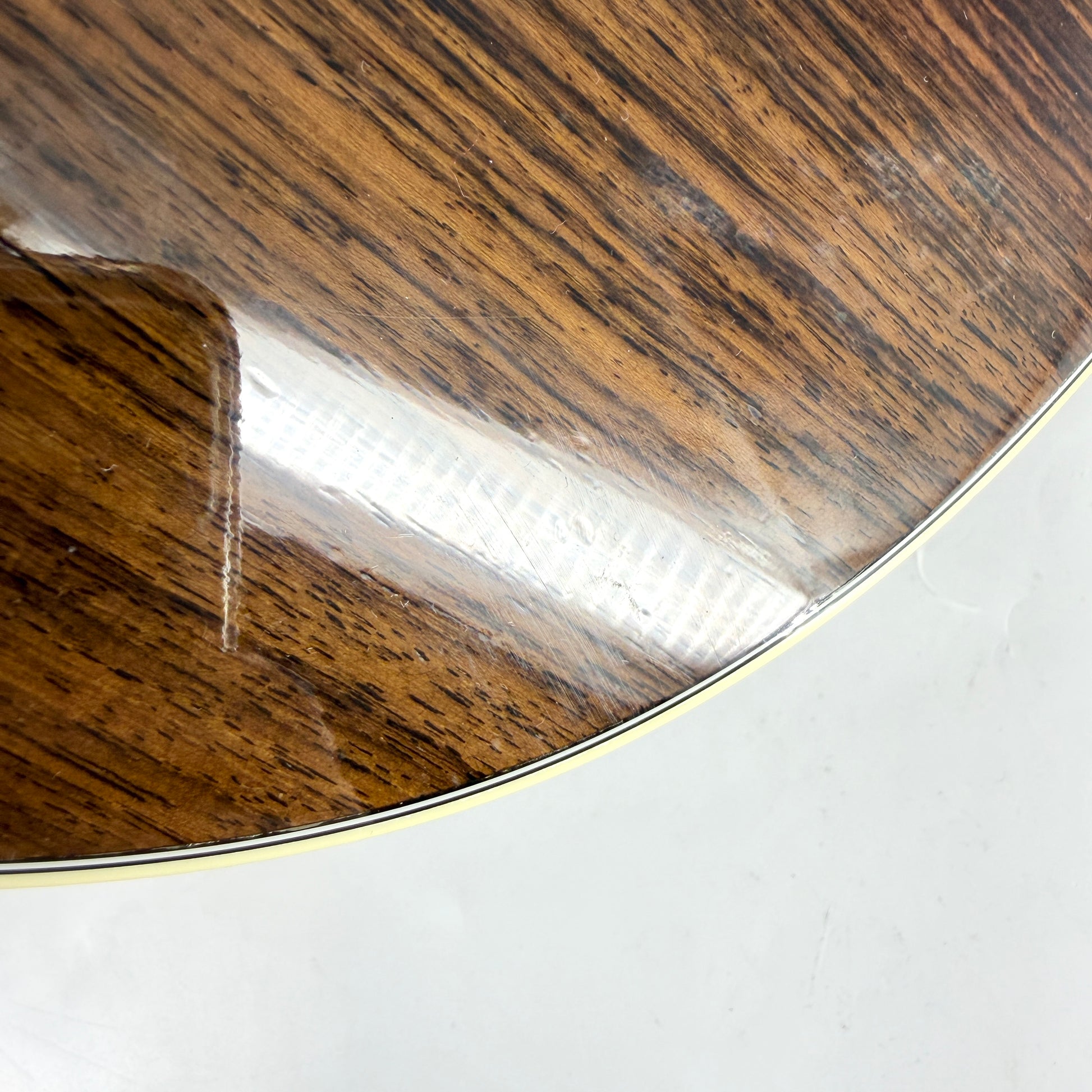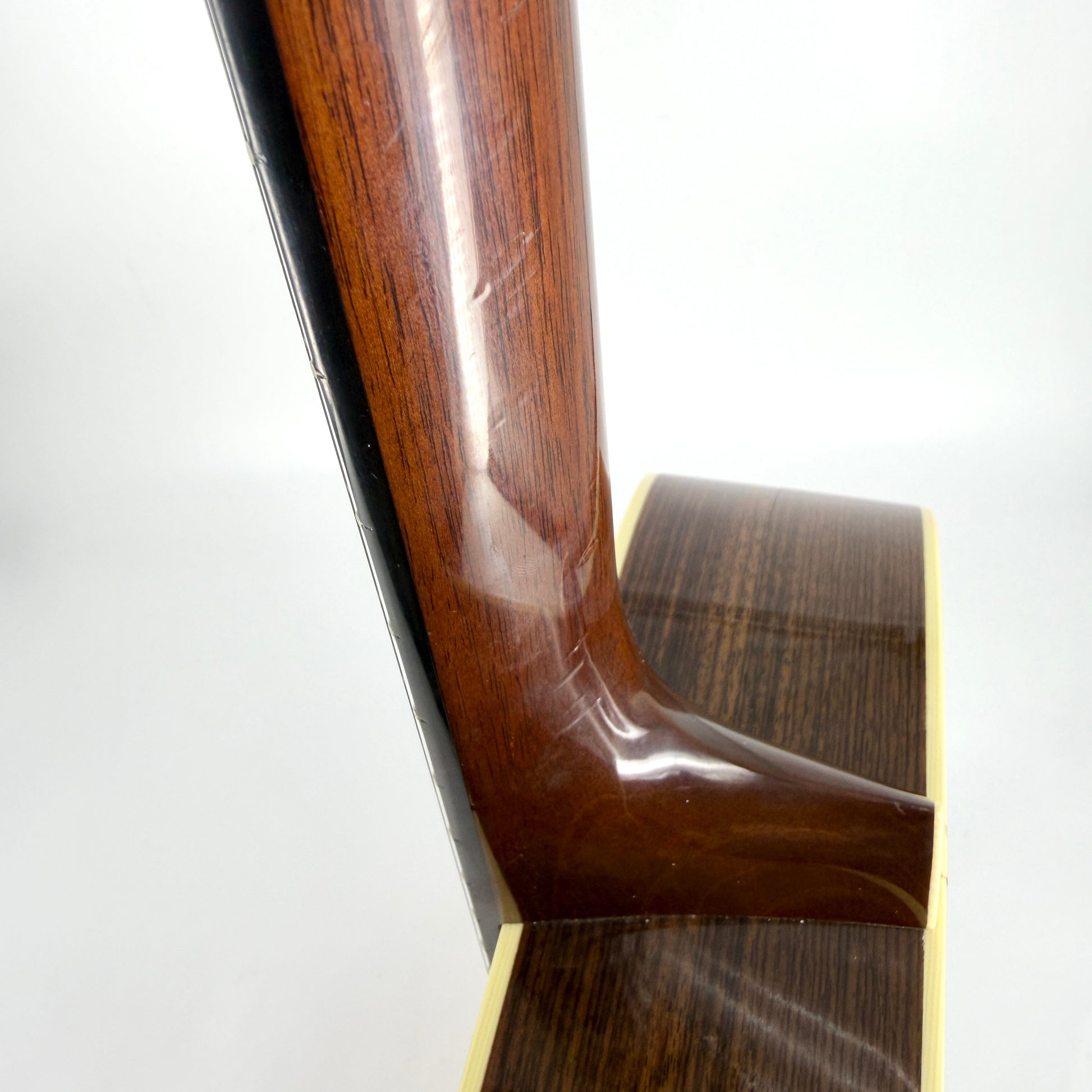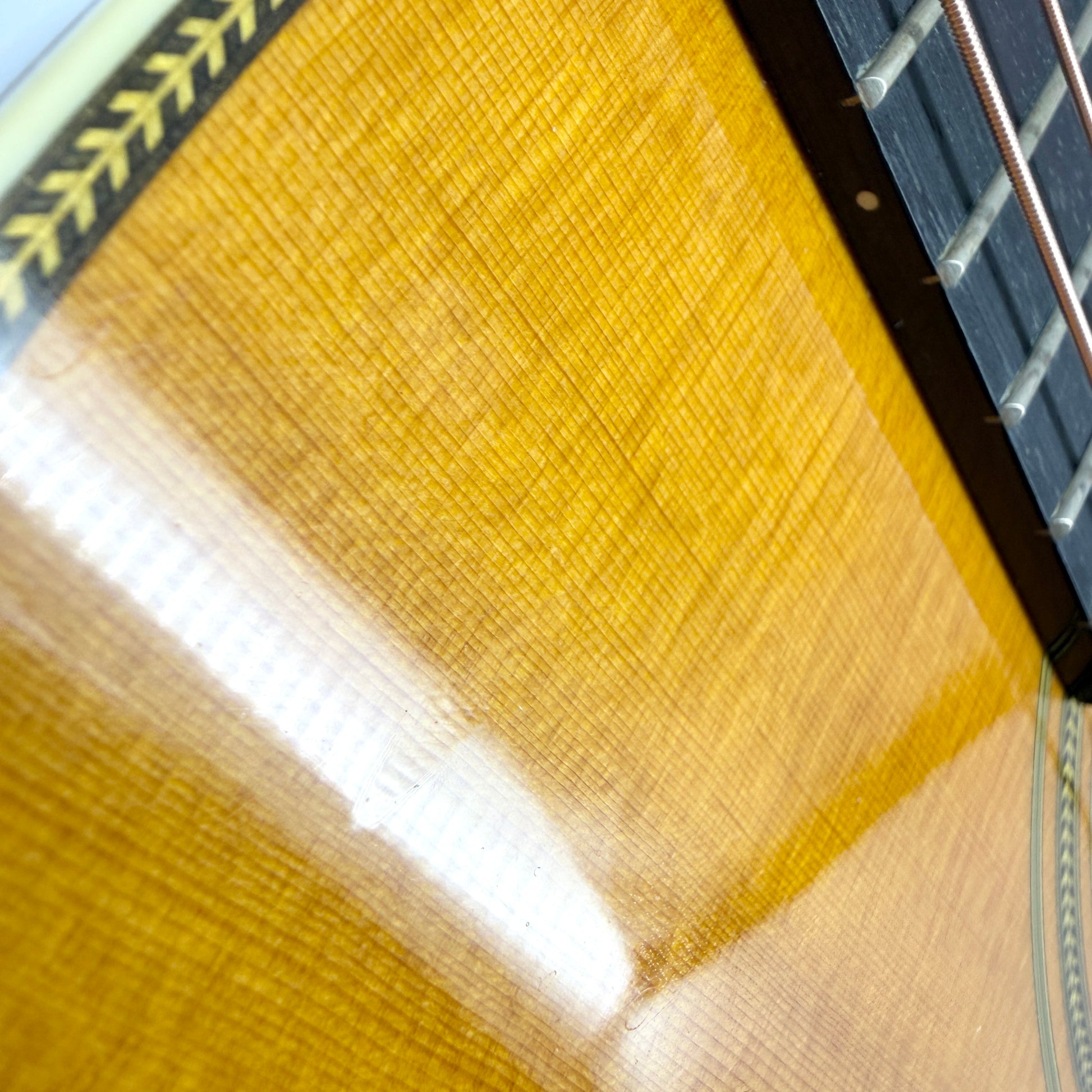 The guitar has had a repair down one side of the guitar (as pictured). It is completely stable and provides a rare opportunity to pick this model up at a far lower price. There's a few additional blemishes on close inspection (exaggerated on our photos under direct studio lighting to make them more visible). The frets are excellent condition and everything works as it should without issue.