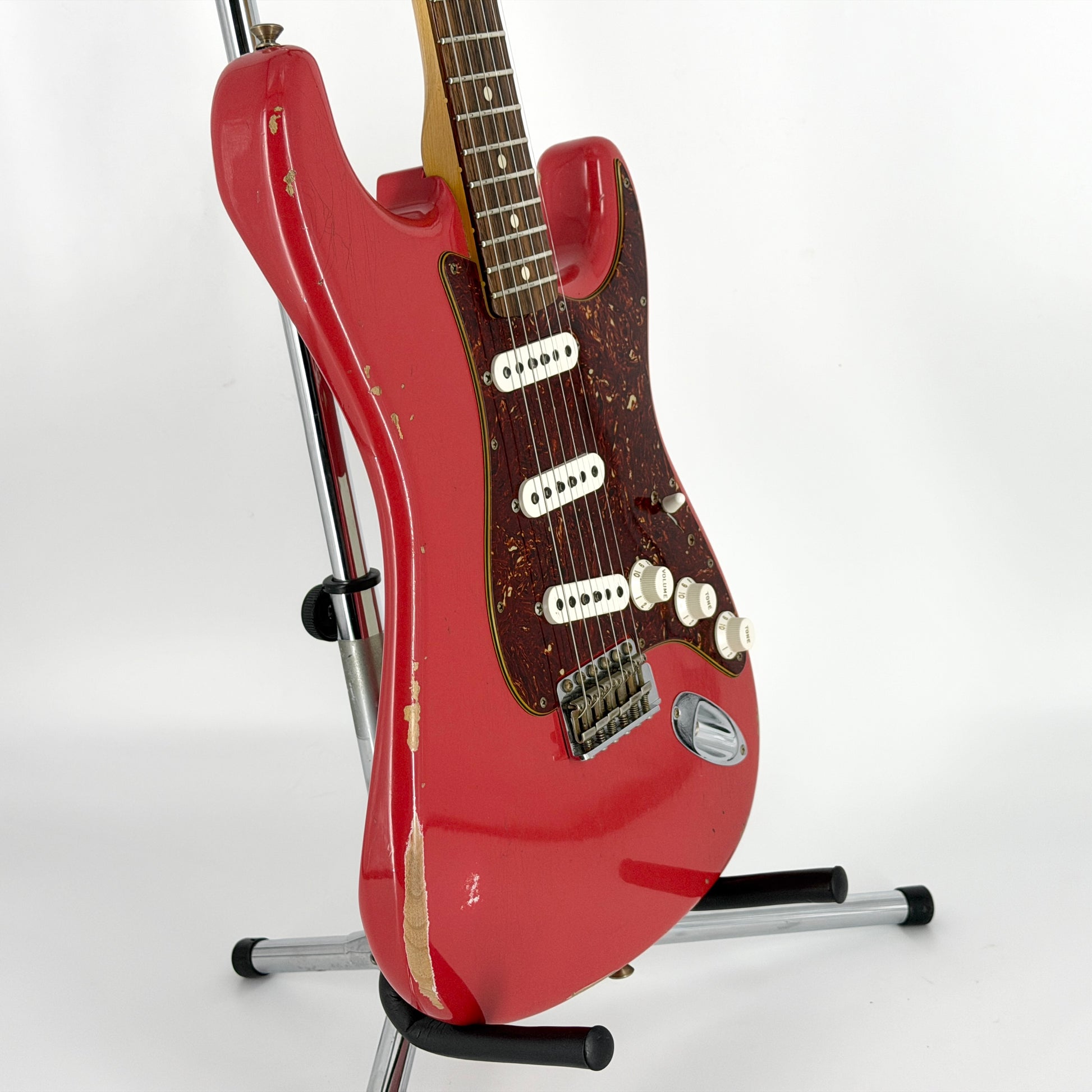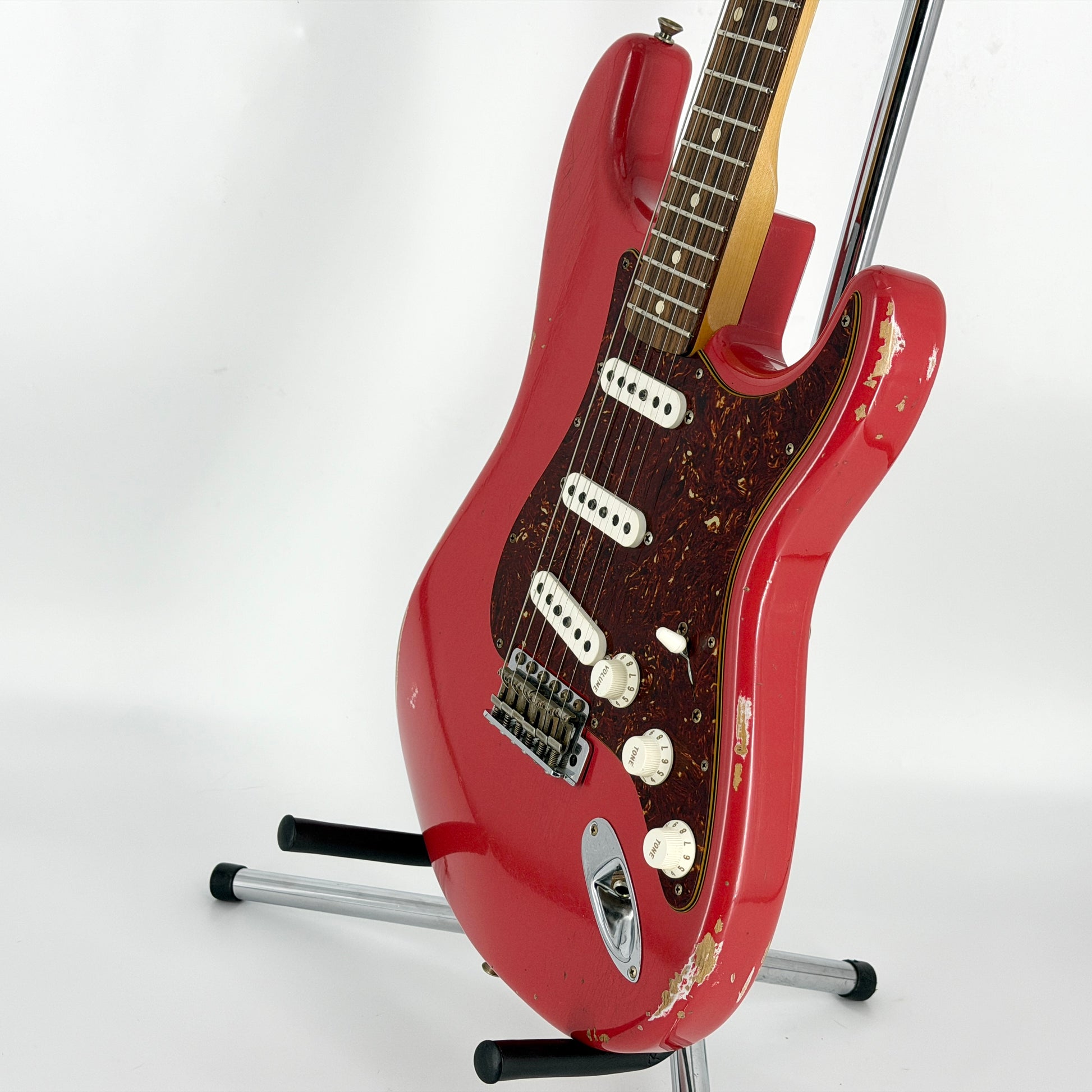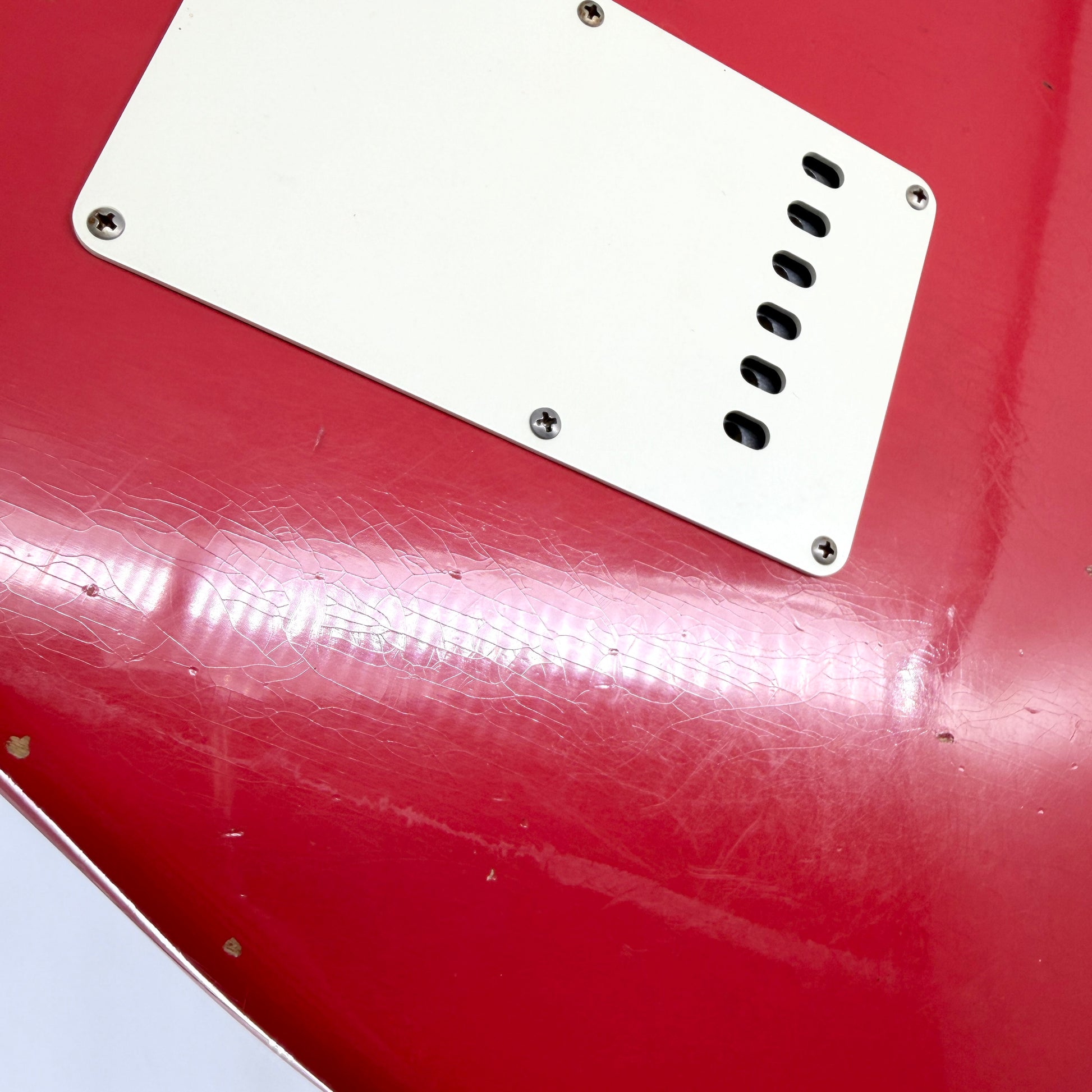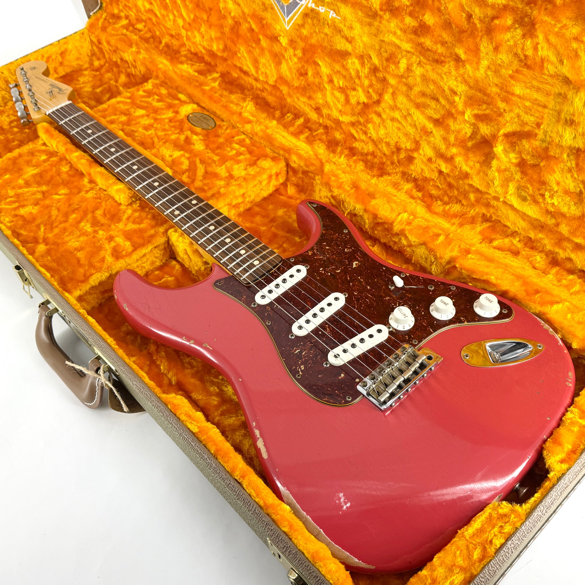 Mint-condition 60’s spec Custom Shop strat finished in Fiesta Red. The relic finish is fantastic and it's completely covered in lacquer checking when it catches the light - we've tried to capture this in a couple of close-up photo.