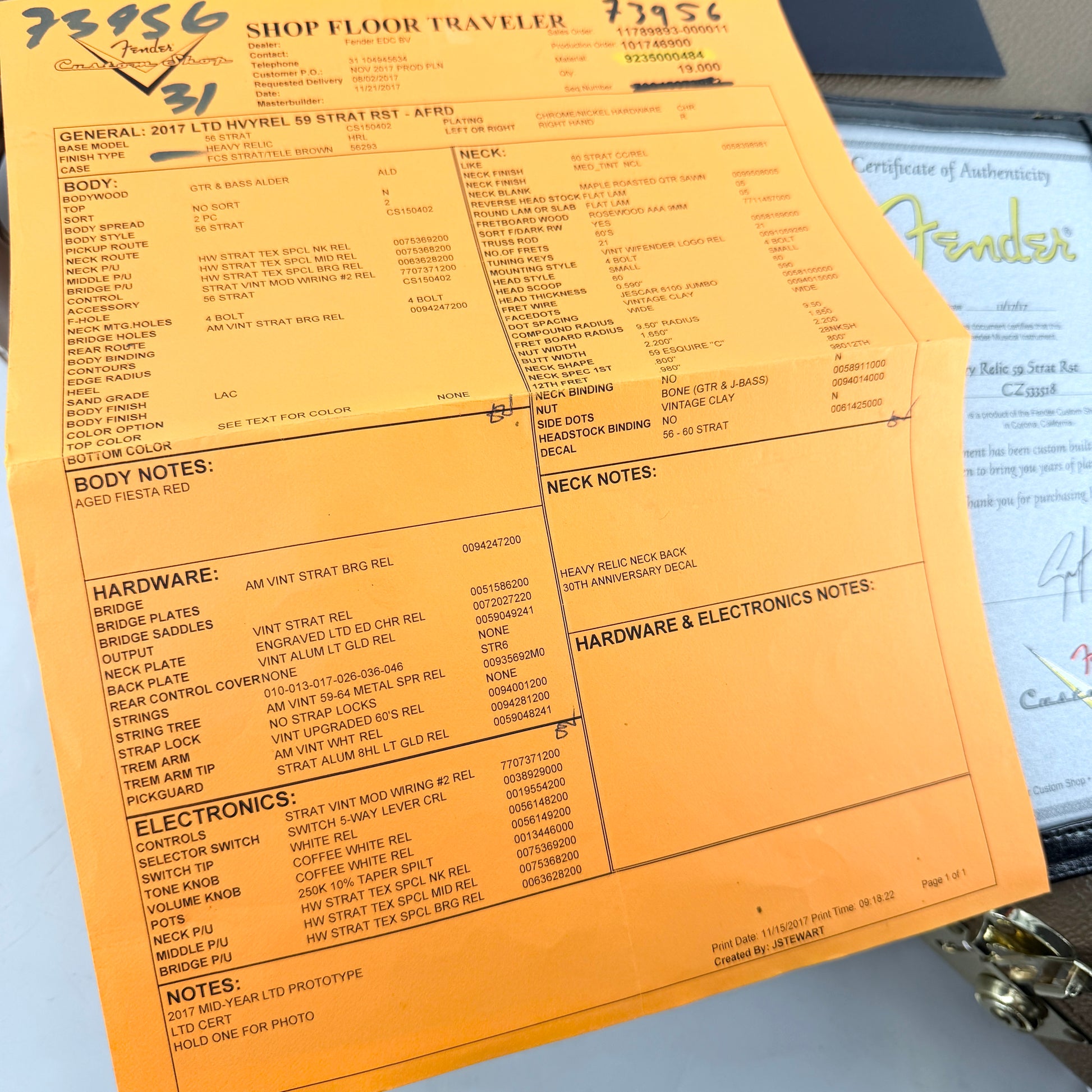 2017 Fender Custom Shop Limited Edition '59 Stratocaster Heavy Relic Roasted - Aged Fiesta Red