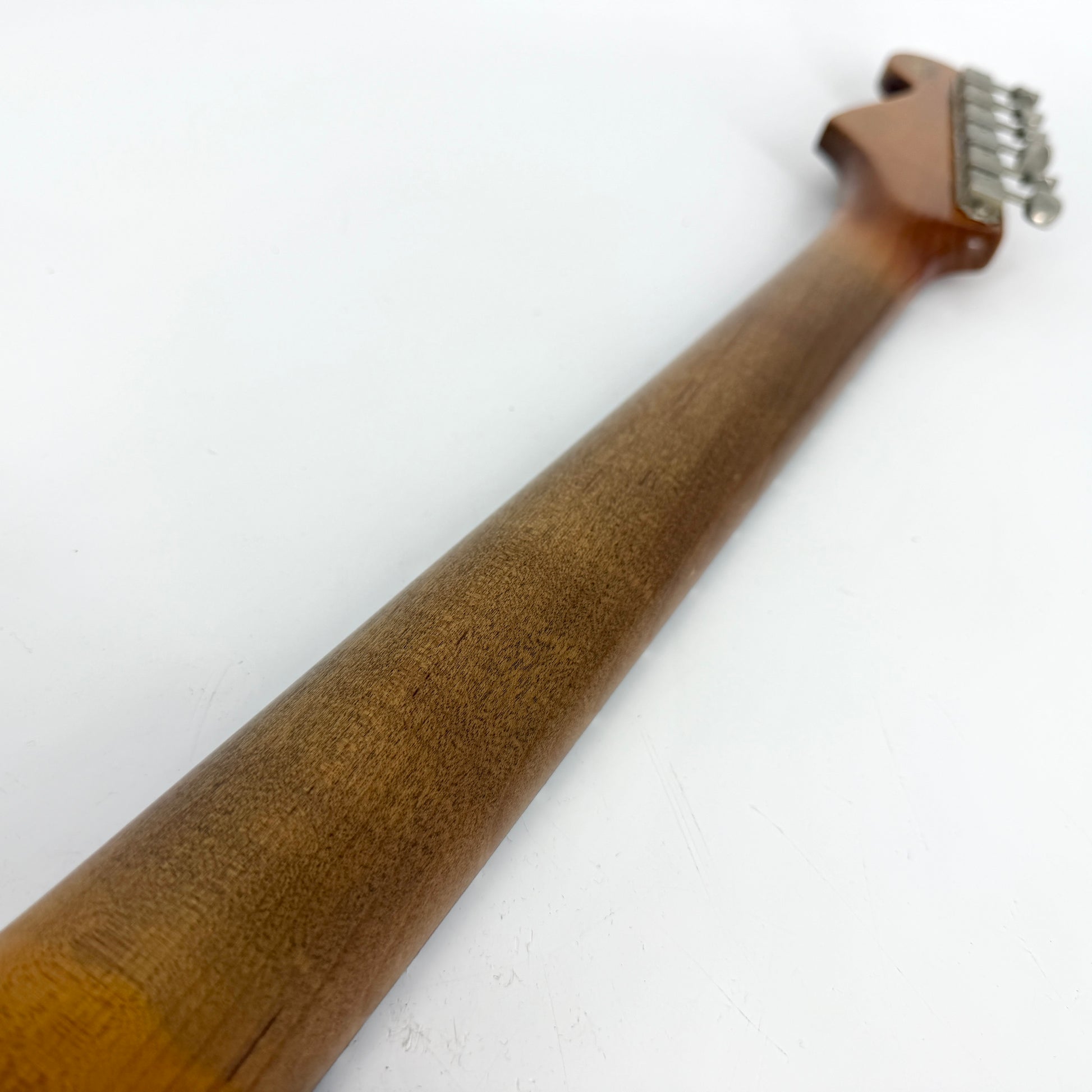 The spec includes an Alder body paired with an aged, silky smooth quartersawn Roasted Maple neck that has a very comfortable '59 Esquire C' (medium with a touch of chunk) profile, 9.5" radius AAA Rosewood fingerboard with vintage clay dots, jumbo frets, and aged vintage-style 6-saddle bridge and tuners.