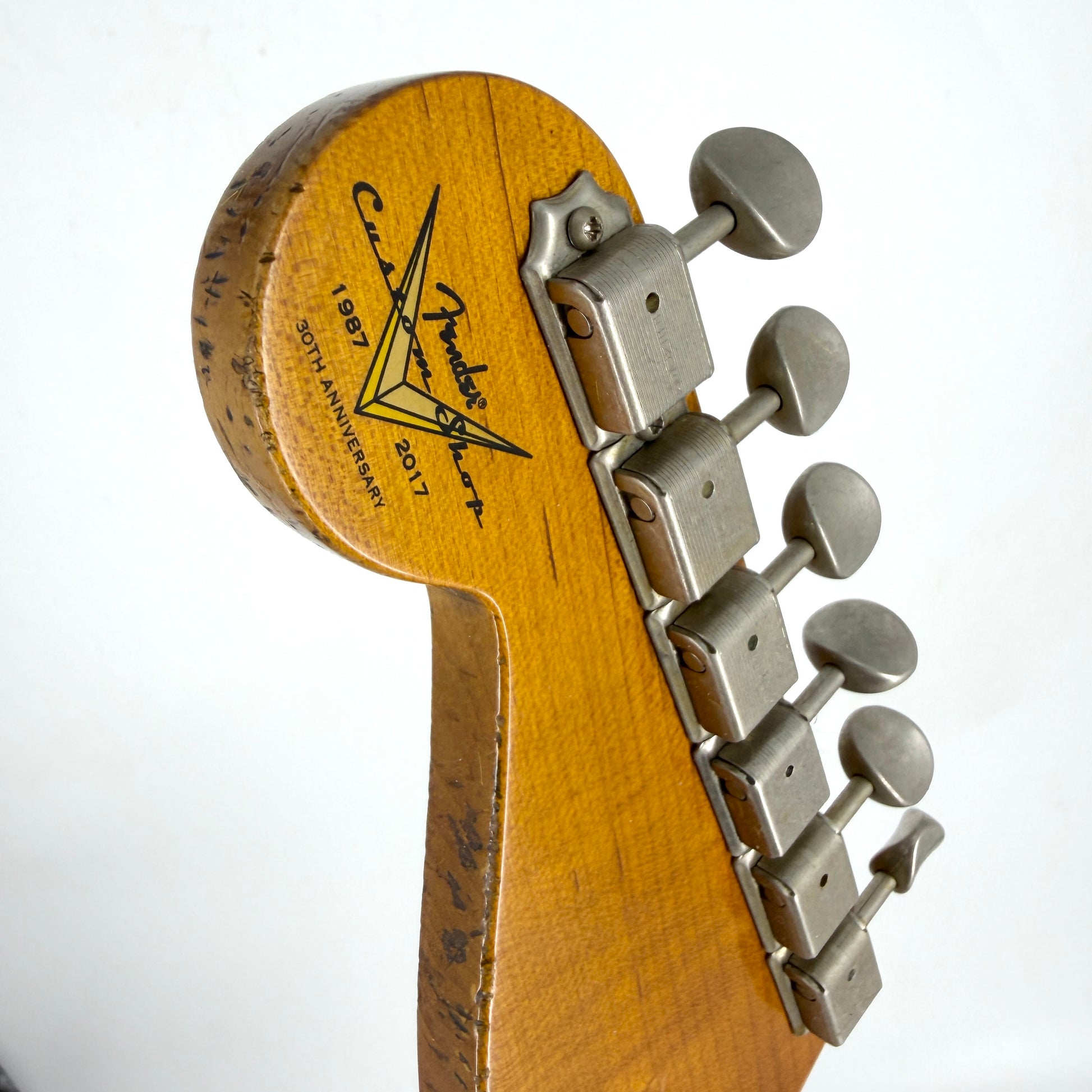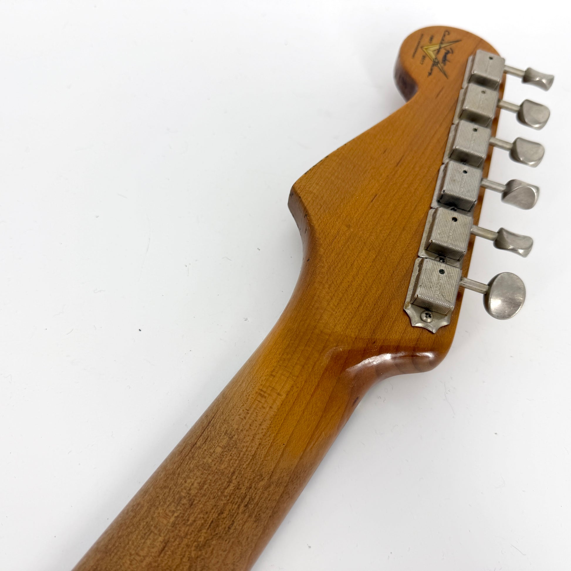 Stunning limited-edition Custom Shop 1959 reissue strat. It has the desirable combination of a Roasted Maple neck, relic aluminium pickguard, and a heavy relic finish that needs to be seen in person to be fully appreciated - it's covered in lacquer checking on close inspection and there's no discernible non-factory wear.