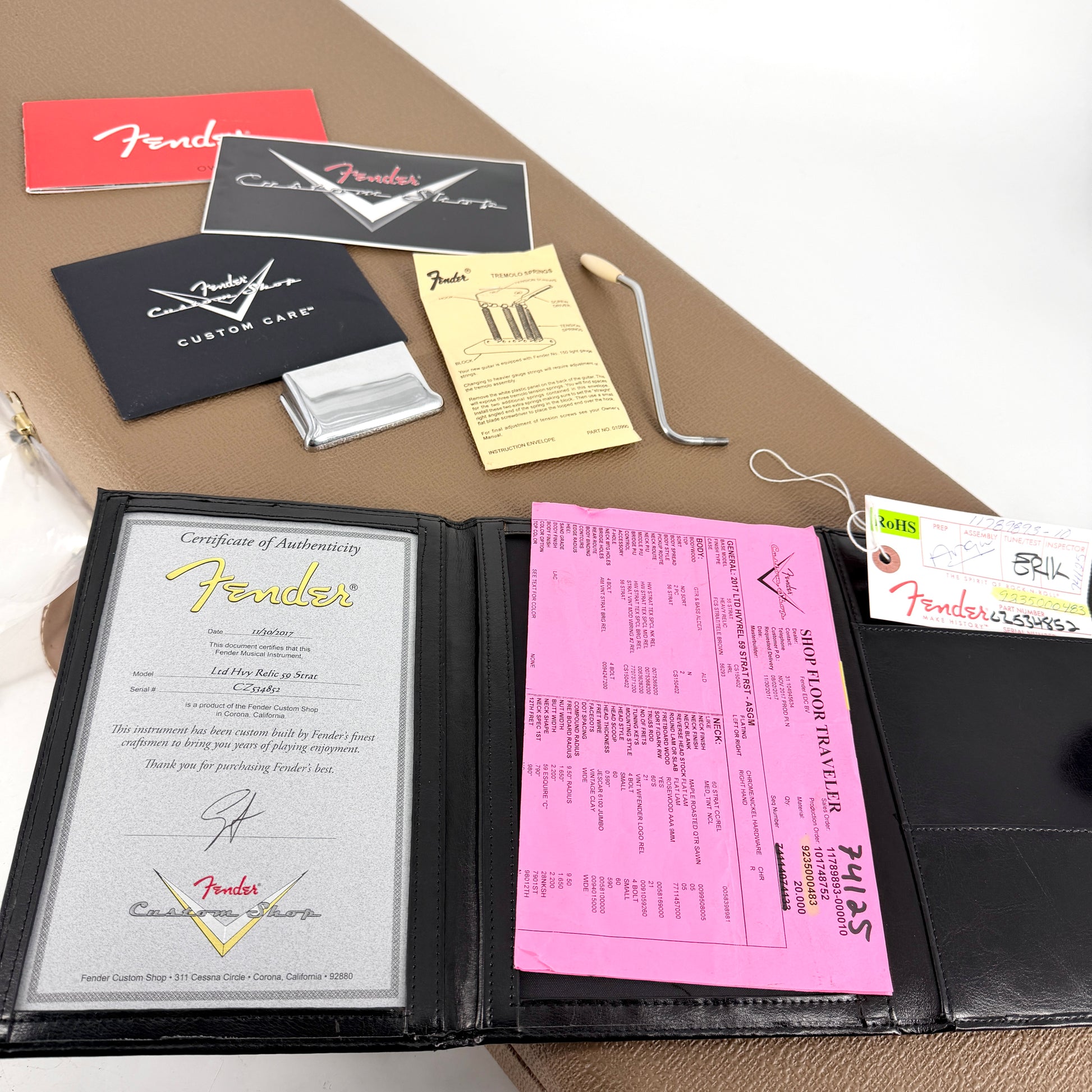 This collectible guitar comes with its original Custom Shop case to keep it protected and its COA, tags, paperwork, trem arm and ashtray cover etc as pictured.