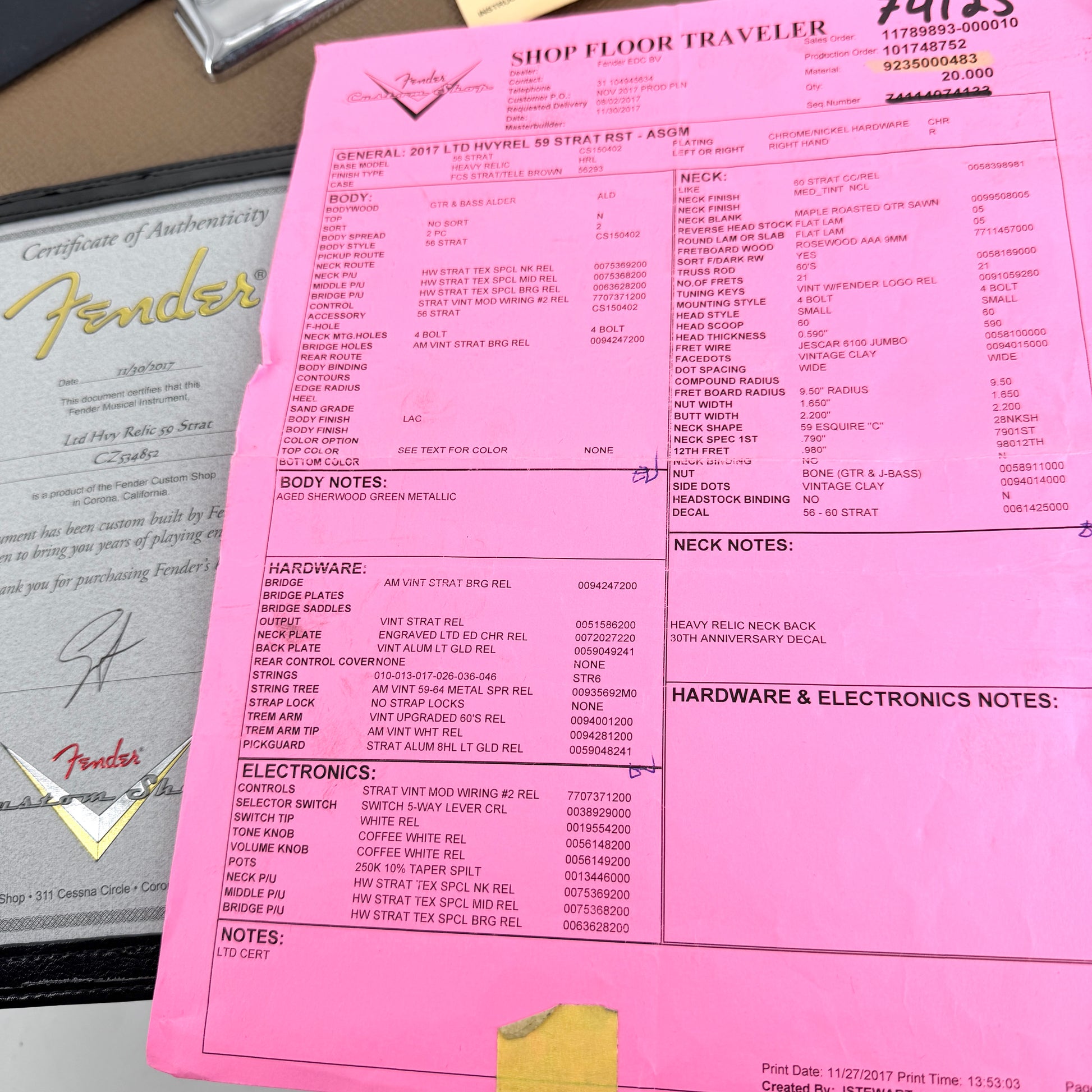 Limited edition 30th Anniversary Custom Shop 1959 reissue strat in Sherwood Green.