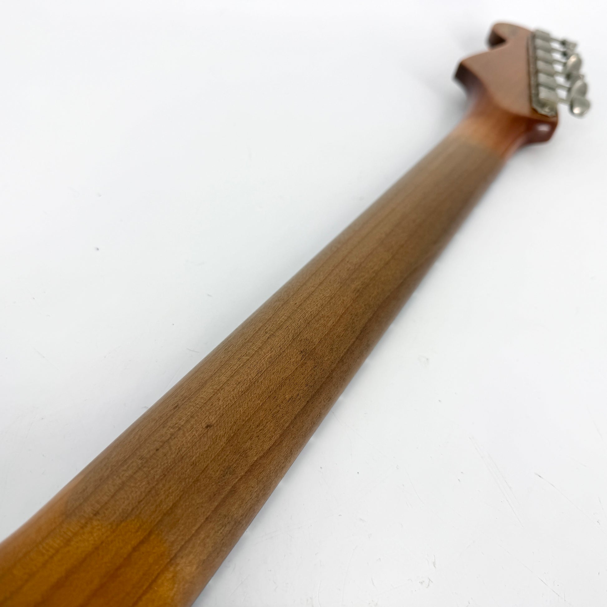 It features the stunning combination of a Roasted Maple neck, aged gold anodised pickguard and a heavy relic finish that needs to be seen in person to be fully appreciated - it's covered in lacquer checking on close inspection and we've tried to reflect this in the the close-up photos.