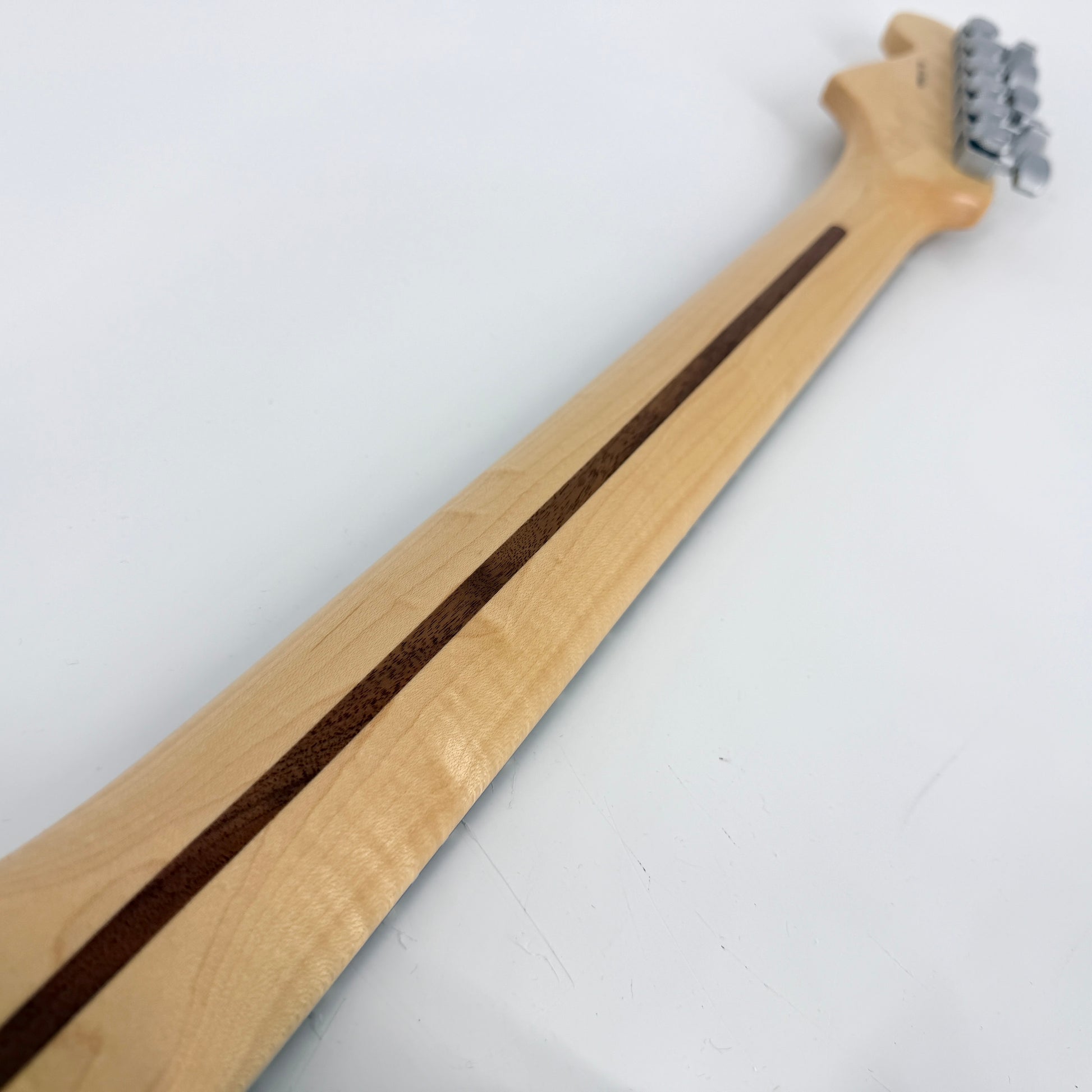 The spec includes a Alder body, comfortable C profile Maple neck with a Rosewood fingerboard, Medium Jumbo frets and 9.5” radius. You get a number of premium appointments, including an LSR roller nut, locking tuners, two-point tremolo bridge. Tone-wise you get 3x Fender Hot Noiseless single coil pickups with 5-way selector switch and contrast 2x tone, 1x volume controls