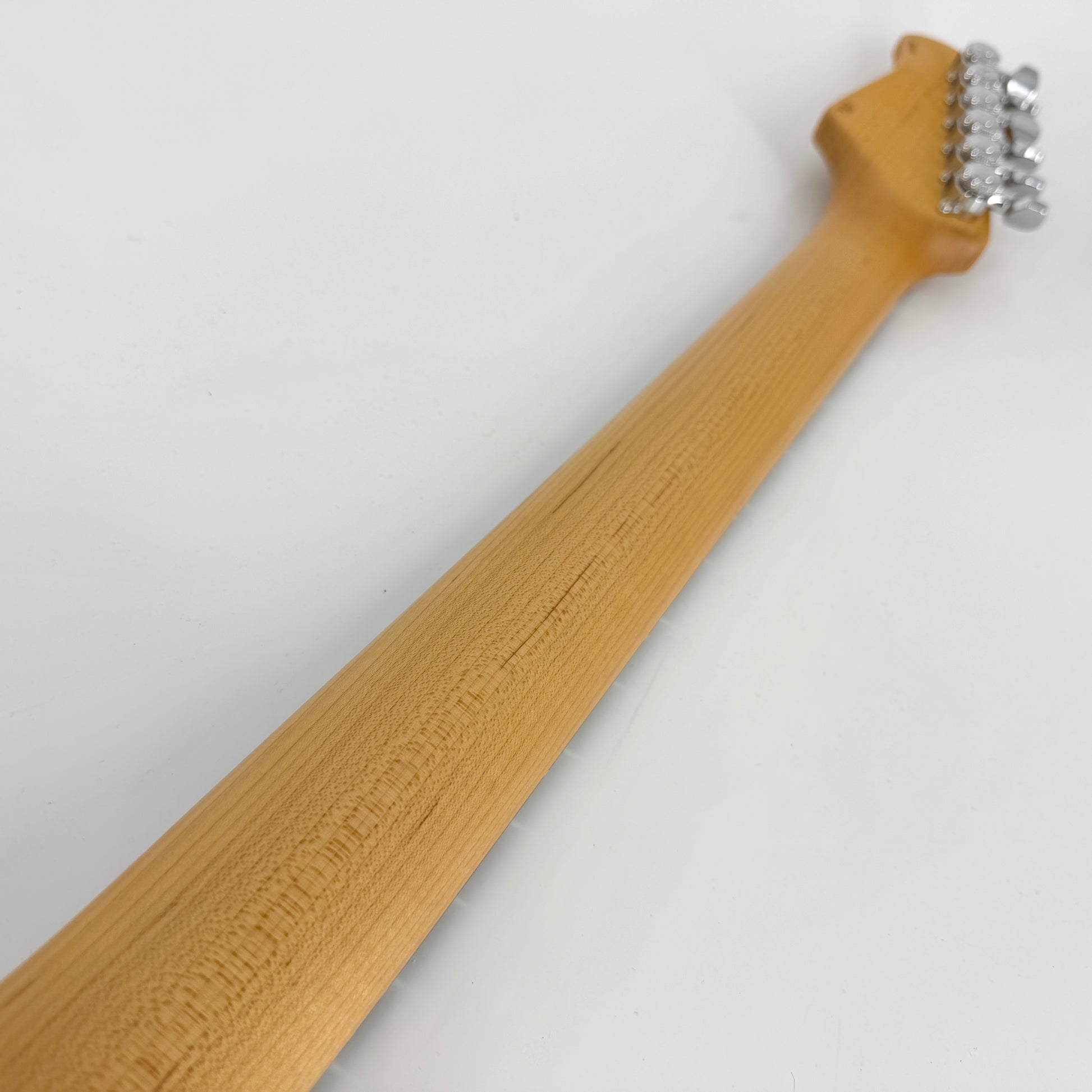 Features include an Alder body, Maple satin-finish neck with 60s C Vintage Standard profile, a Indian Rosewood fingerboard with 10" - 14" radius with standard roll, stainless steel medium frets, clay dots, TonePros TP6 bridge and locking tuners.