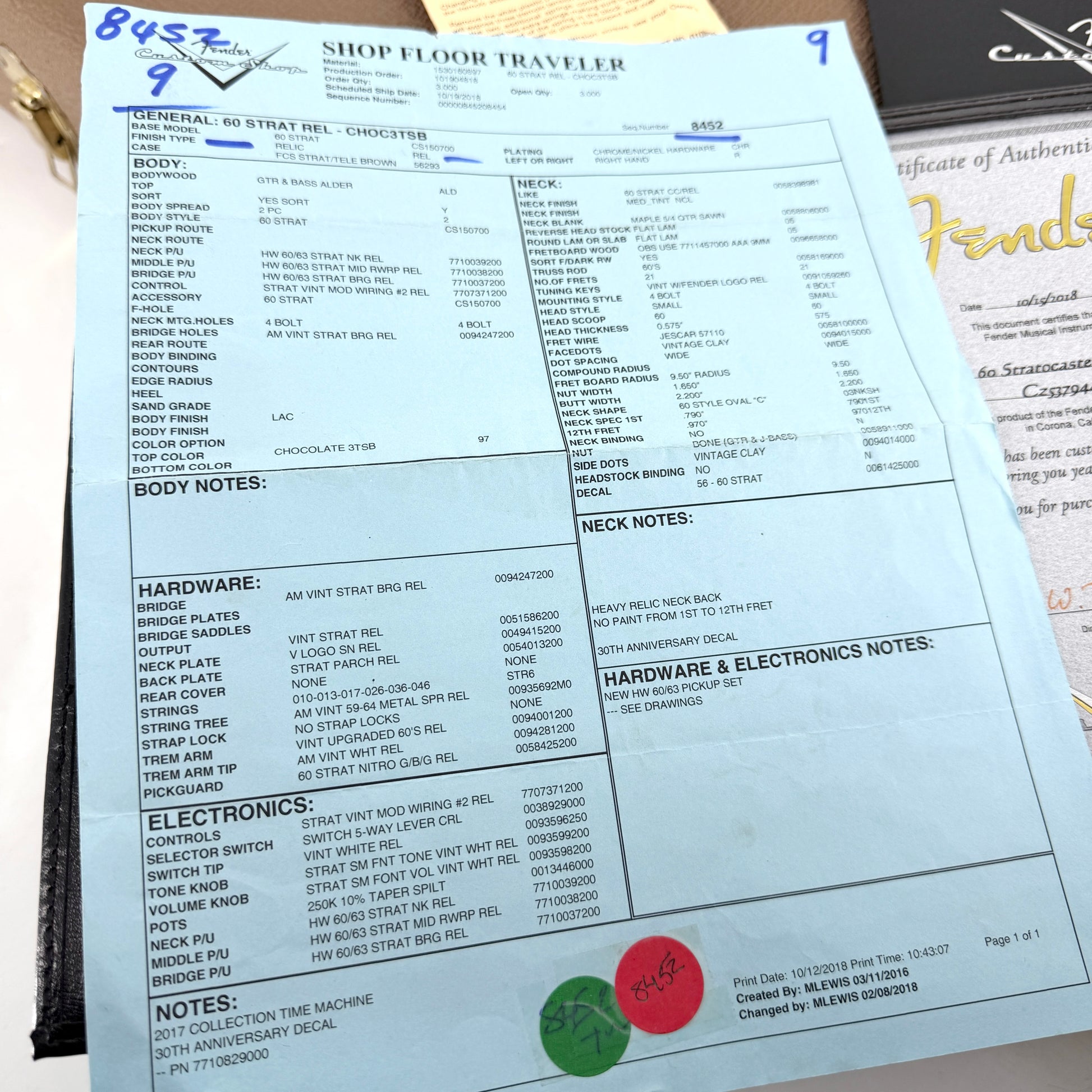 2018 Fender Custom Shop 60 Stratocaster Relic – Chocolate 3 Tone Sunburst