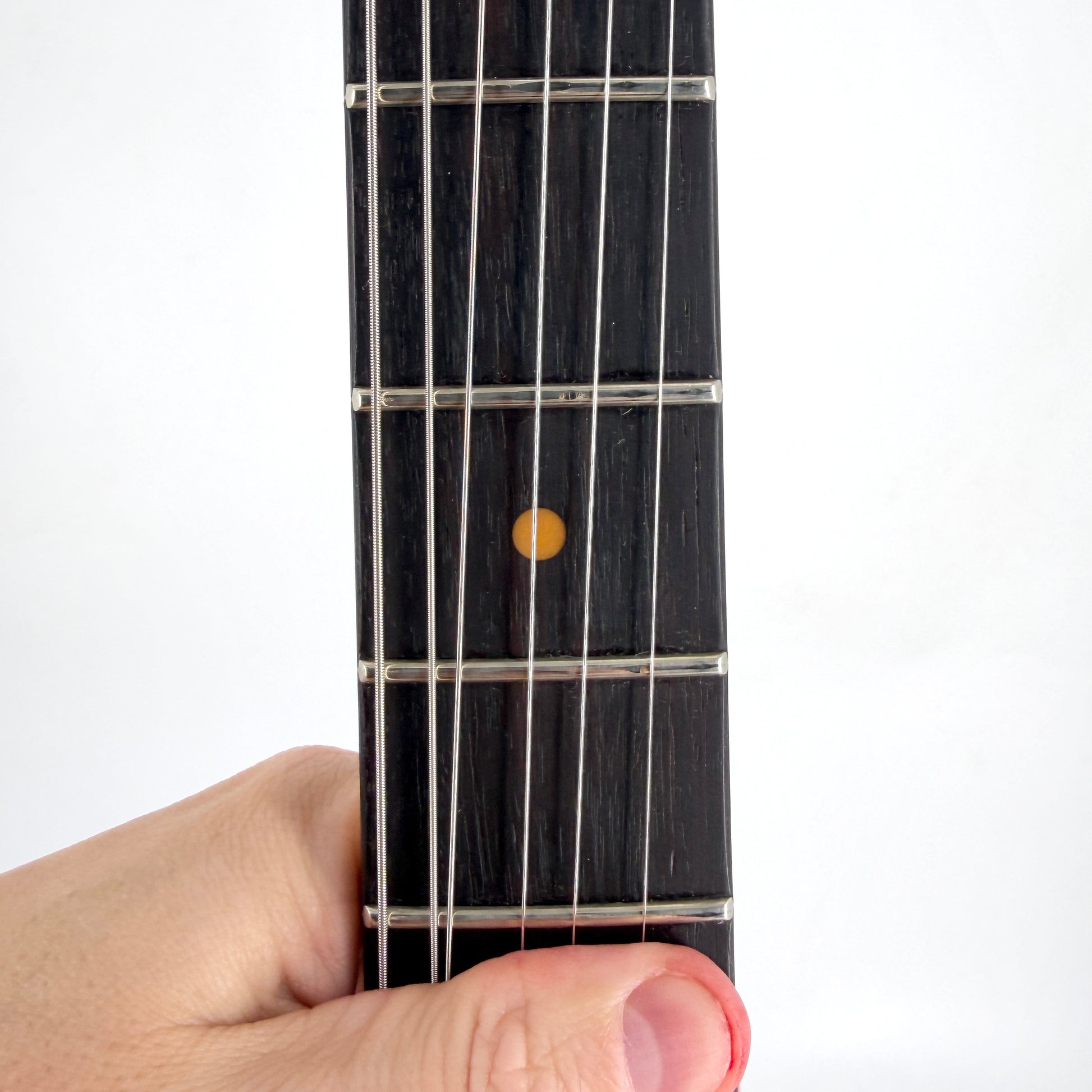 Stunning 1960’s reissue Custom Shop strat finished in Chocolate Sunburst. The relic finish is fantastic, it's covered in lacquer checking which is visible as it catches the light, and that we've tried to illustrate in the close-up photos.