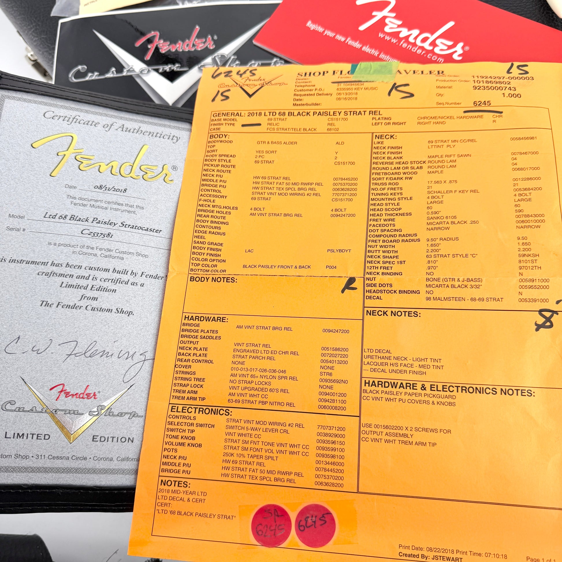 2018 Fender Custom Shop Limited Edition ’68 Stratocaster Relic - Black Paisley
