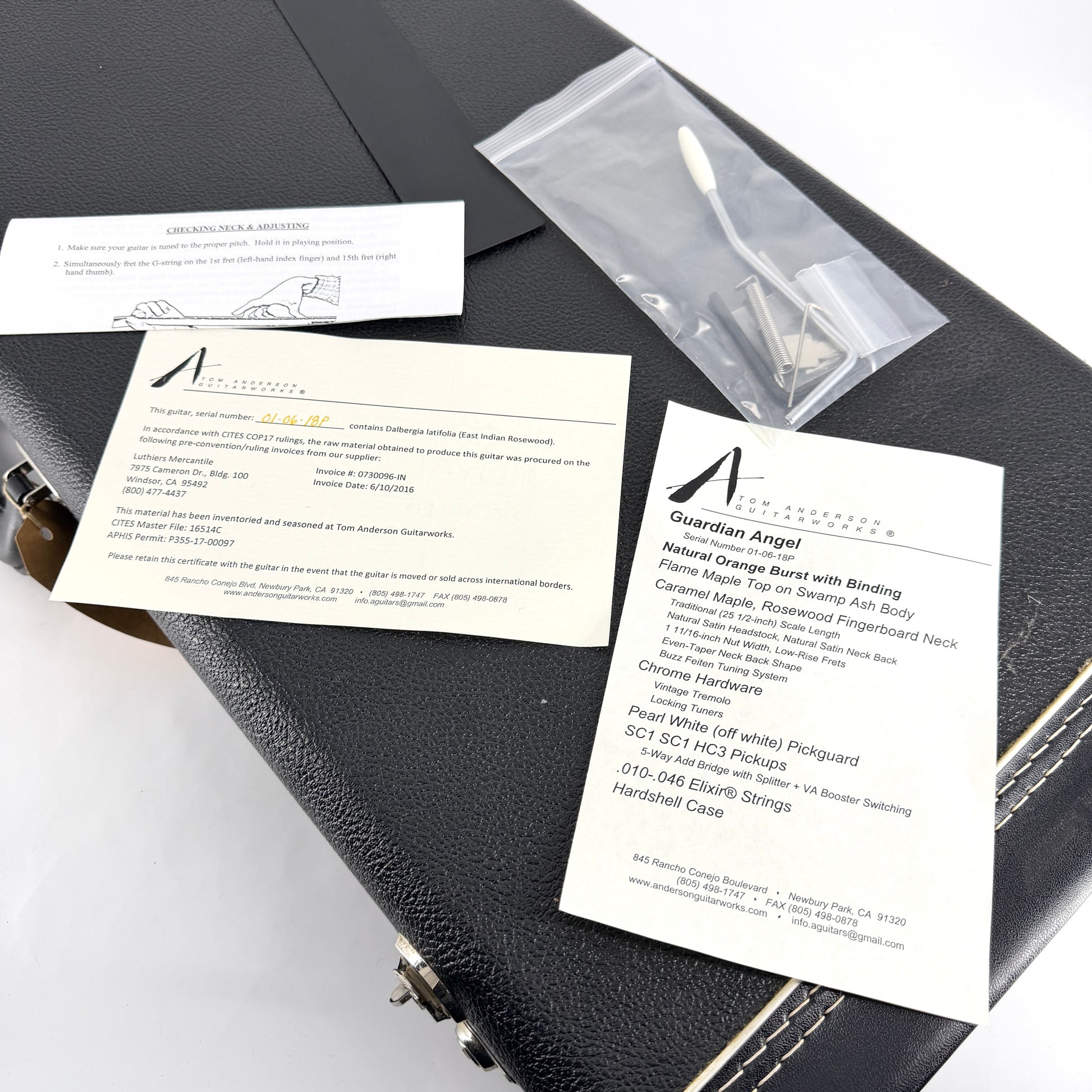 It comes with its original premium hard case, its paperwork and trem-arm.
