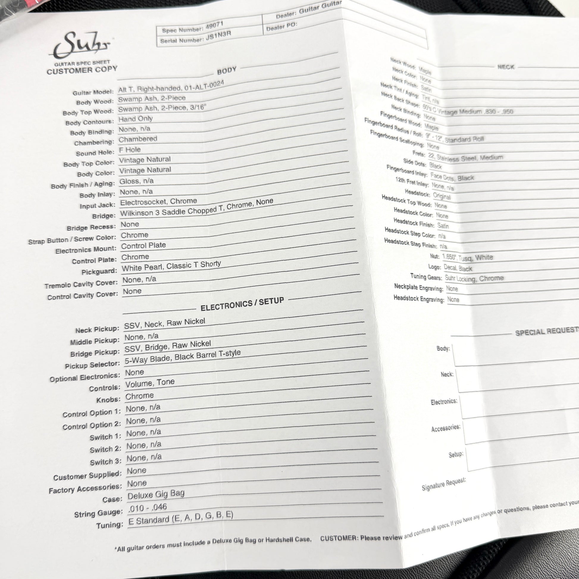 2019 Suhr Alt T - Vintage Natural