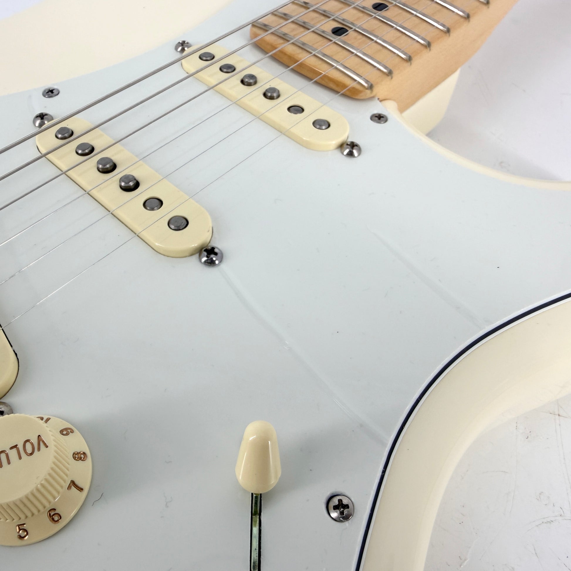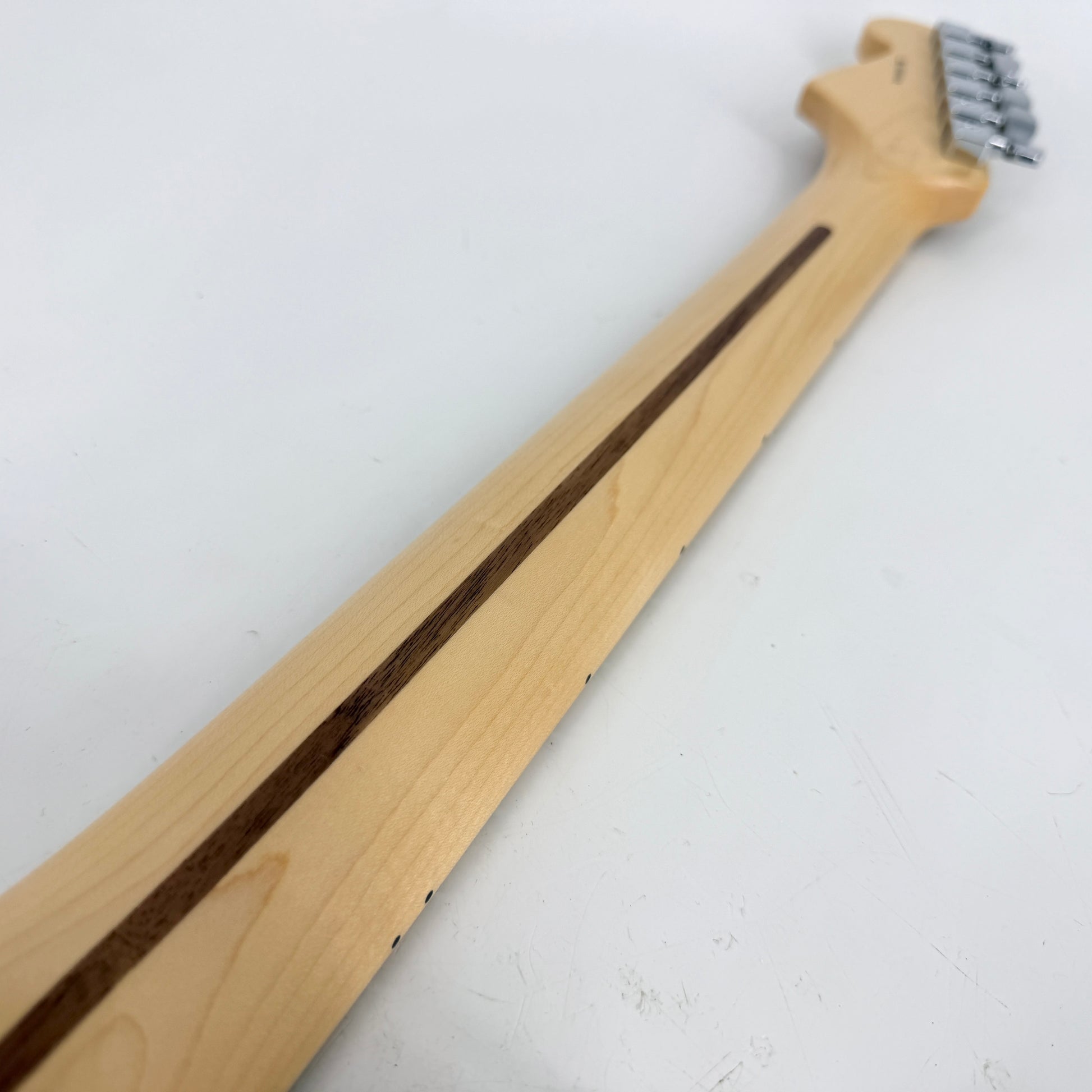 You get traditional strat features including an Alder body, Maple neck with comfortable Deep C profile, Maple 9.5” radius, 22 narrow tall frets and 2-point bridge with pop-in trem arm.