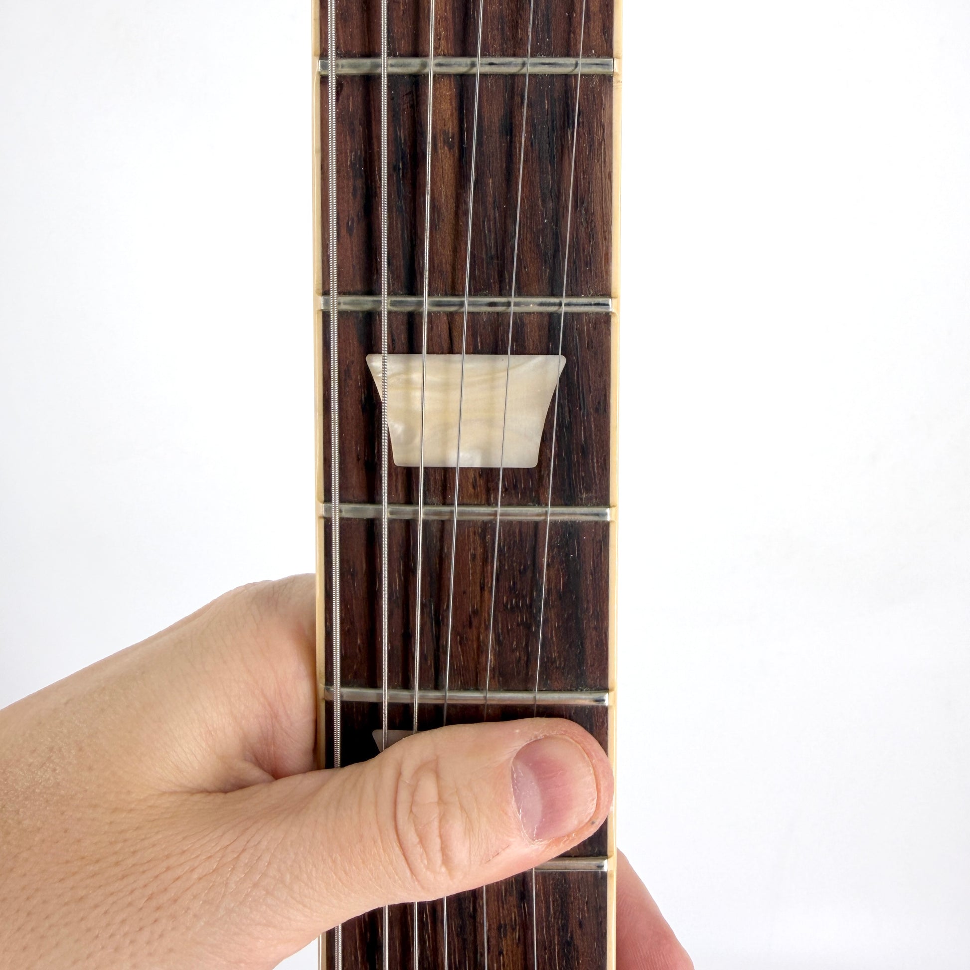 The spec includes a mahogany body with a maple top, for a tight, bright, focused sound, and a mahogany neck with comfortable rounded C (medium) profile and Indian rosewood fretboard with 22 medium jumbo frets, trapezoid inlays and Graph Tech nut. There’s also vintage keystone tuners, and the added bonus of an upgraded Lightning Guitars tailpiece which reduces the string break angle and gives you all the benefits of 'top-wrapping' (fewer string breakages/lighter bends etc) but with a cleaner look.