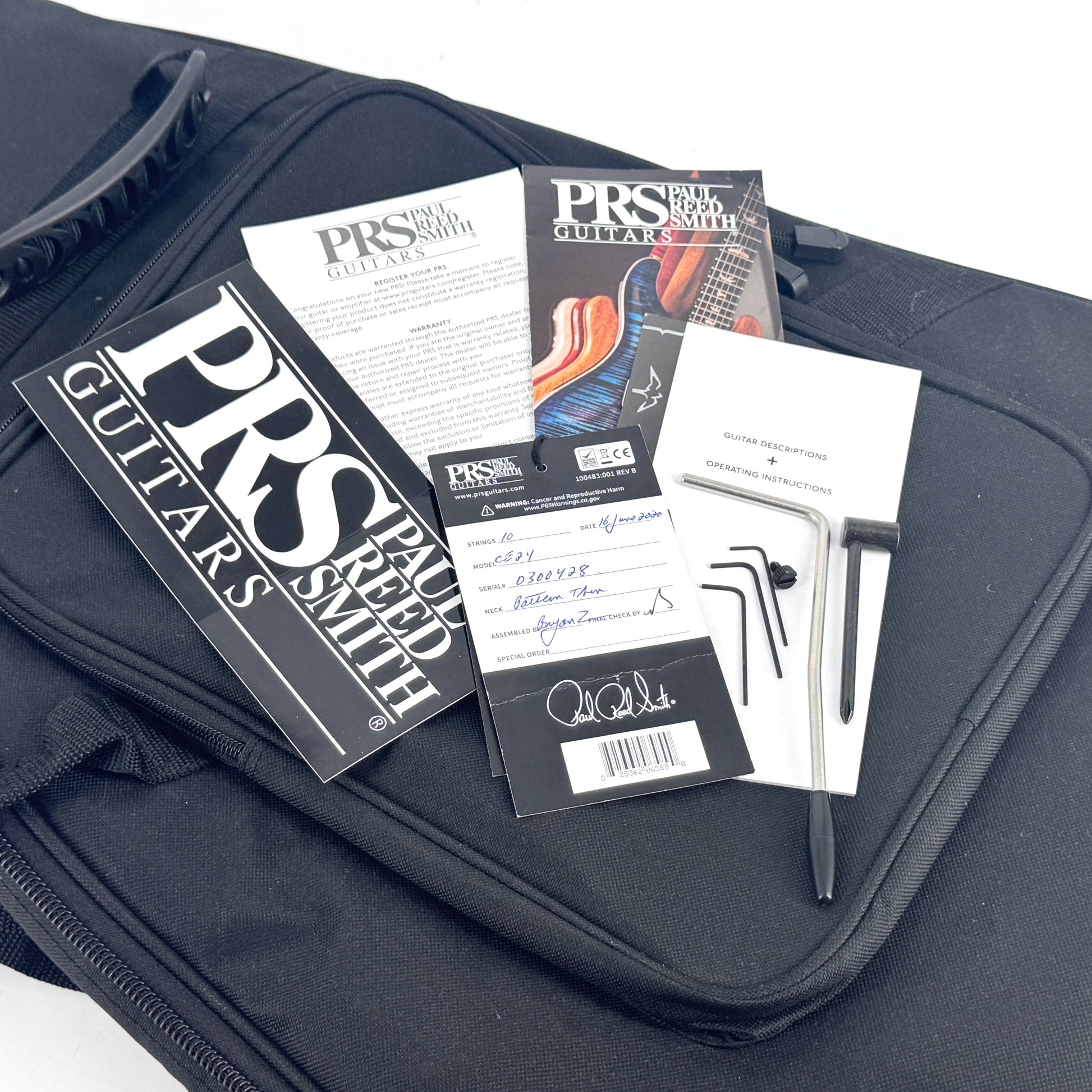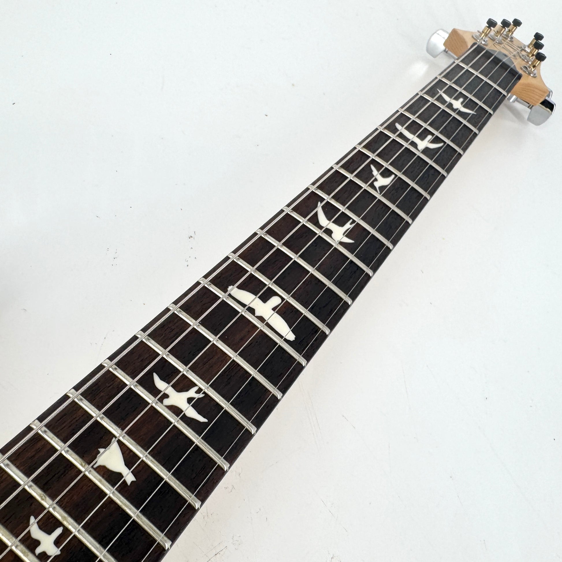 Key features include a Mahogany body, Maple neck with comfortable Pattern Thin profile, Rosewood fingerboard with birds inlays, 24 frets, PRS patented tremolo bridge and upgraded Grover locking tuners.