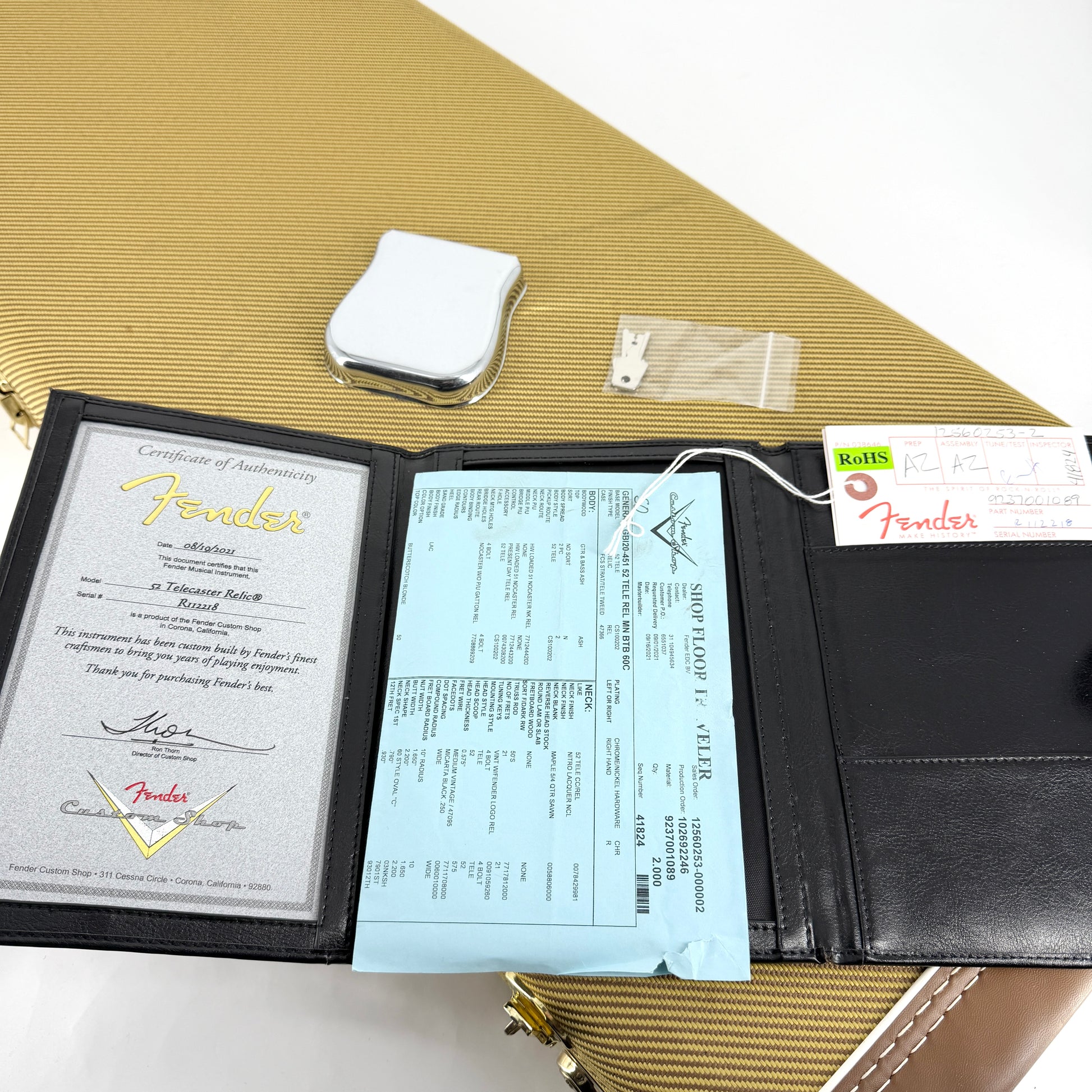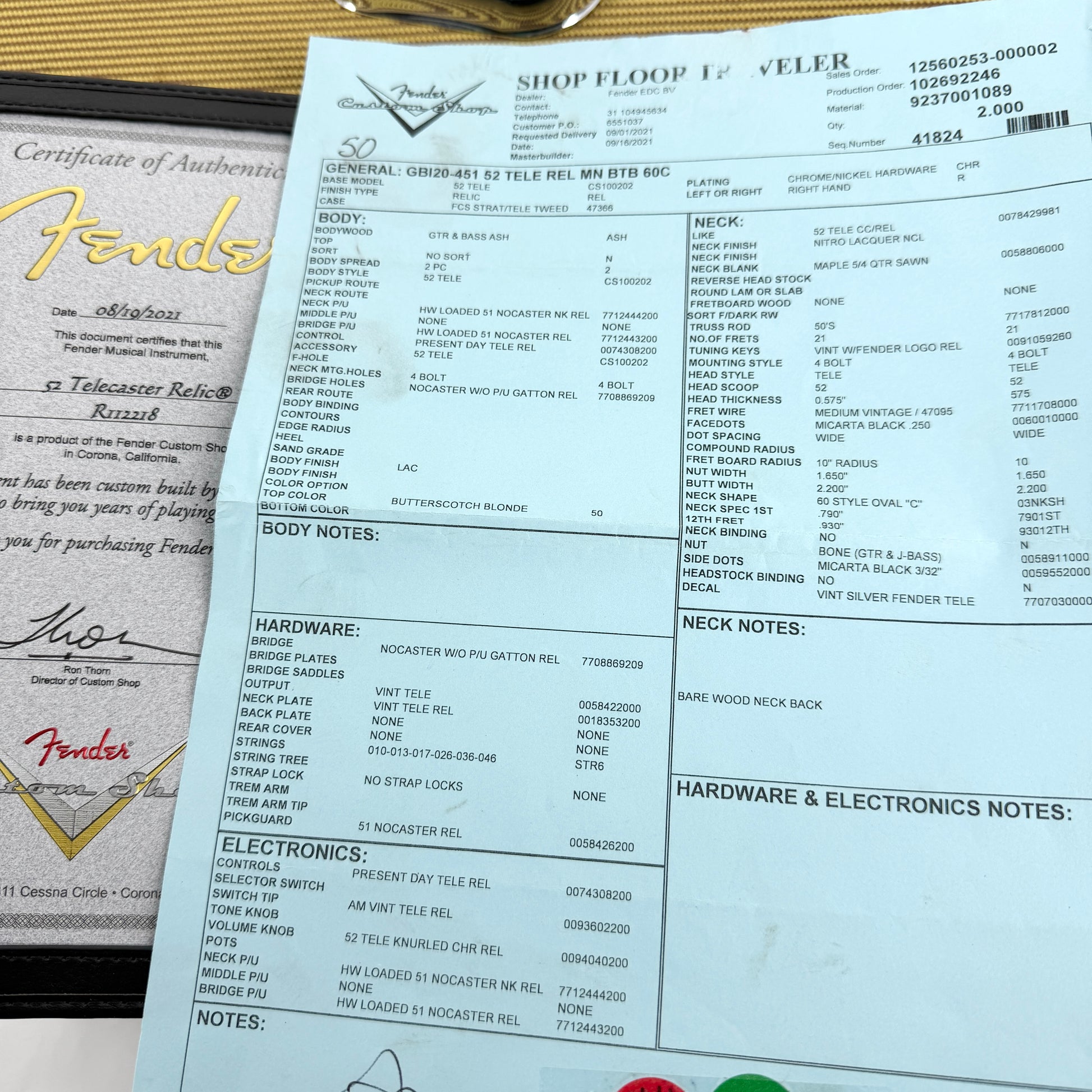 It comes with its original custom shop tweed case, certificate of authenticity, shopfloor traveller, tags, paperwork, and ashtray cover.