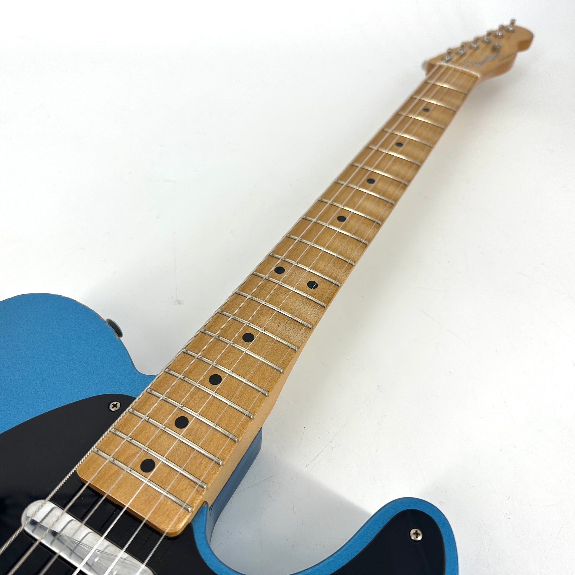 Stunning ‘50 road worn telecaster finished in lake placid blue, and with a factory light relic treatment, for classic tele looks.