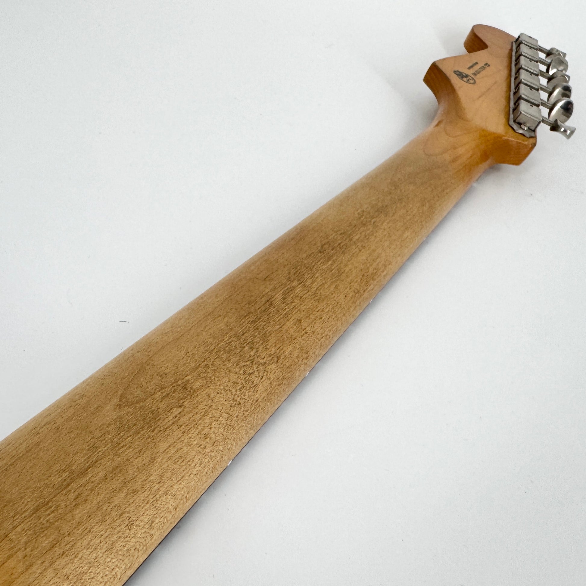The specs include an Alder body with comfortable silky smooth 60's C Maple neck, Pau Ferro fingerboard, vintage tall frets and 7.25” radius. You also get a 2-point synchronised bridge with 6-saddle vintage style bridge, and vintage style tuners, nickel/chrome hardware and mint green plastics.
