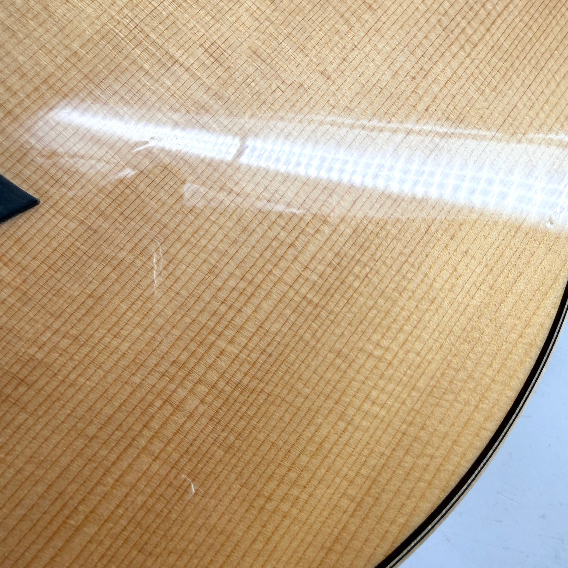 This model is appointed to match its counterparts in the 800 Series, featuring Maple binding with black purfling accents, a single-ring Abalone rosette, a thin gloss finish on the entire body, and mother-of-pearl fretboard and peghead inlays.