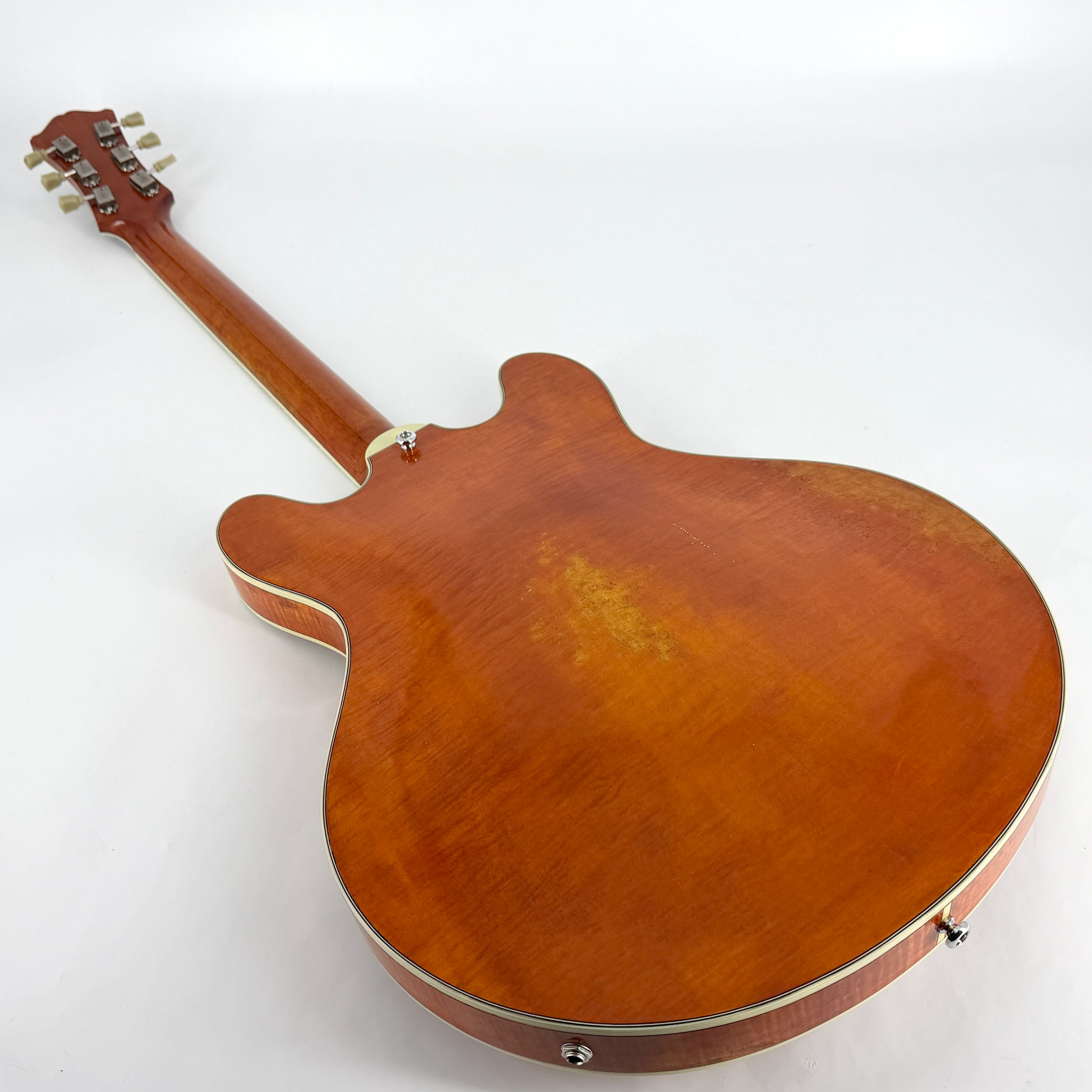 Beautifully figured Eastman semi-hollow with an aged 'Antique' finish to give it the look and feel of a vintage guitar. The frets and guitar in excellent condition and everything works as it should.