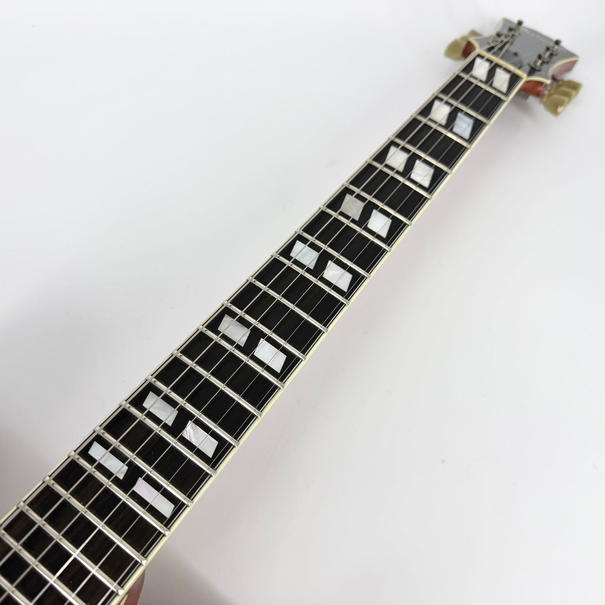 The Maple neck has a comfortable 'Traditional Even C' profile and it has a premium Ebony fingerboard with 12" radius and medium jumbo frets. The tuners and bridge are both from the Gotoh Relic series and performs superbly.