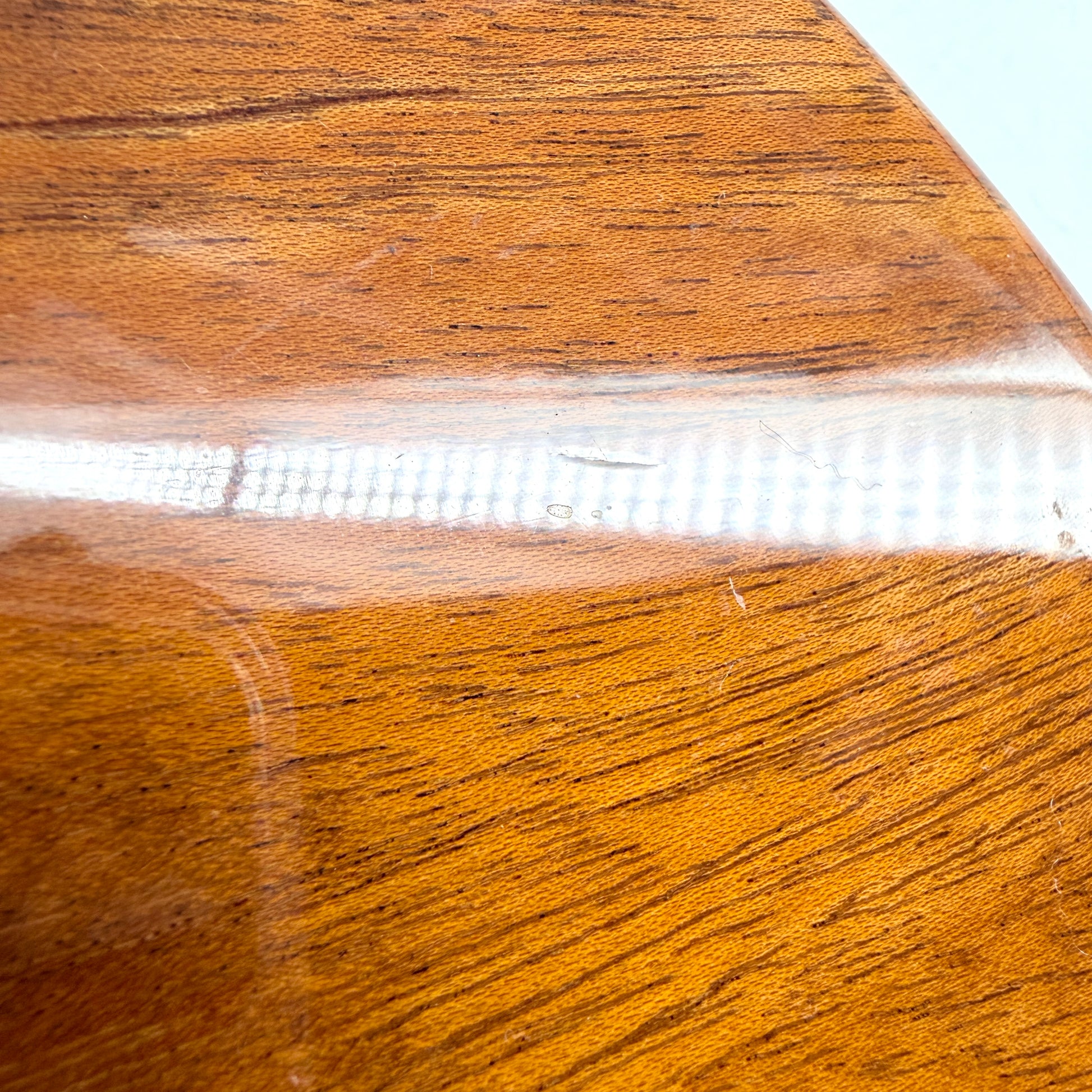 It is in excellent condition, with just a few barely visible blemishes on the back edge and rear if closely inspecting very closely and bouncing light onto the surface (we have done this in the photos to exaggerate them and make them more visible). The frets are excellent and everything works as it should without issue.