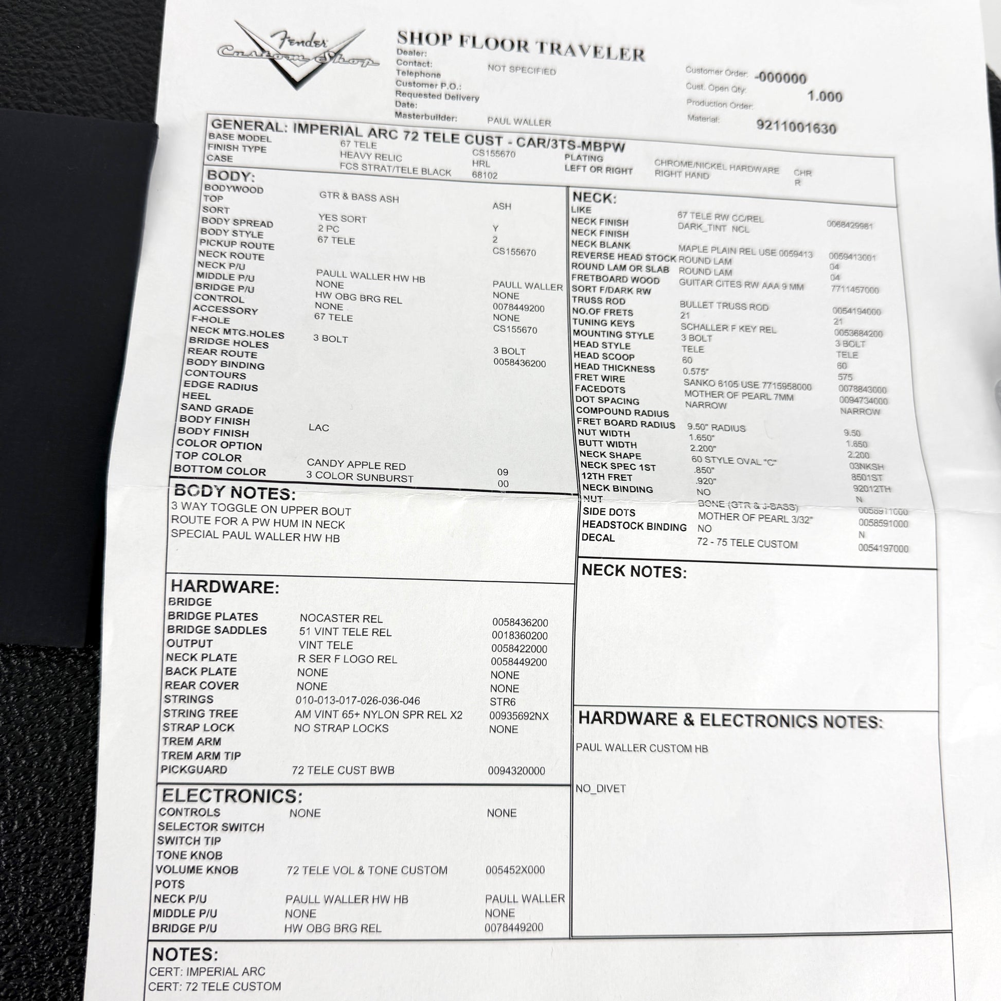 2023 Fender Custom Shop Paul Waller Masterbuilt Arc '72 Telecaster Deluxe Heavy Relic - Candy Apple Red over Sunburst