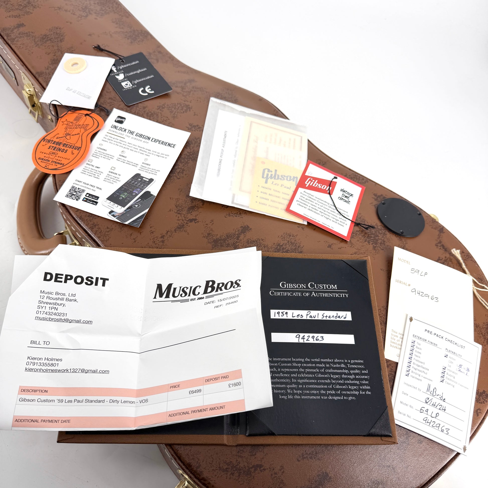 Gibson Custom Shop '59 reissue Les Paul finished in Dirty Lemon VOS and with its original sales receipt - purchased new for £6500 only a few months ago (July 2025).