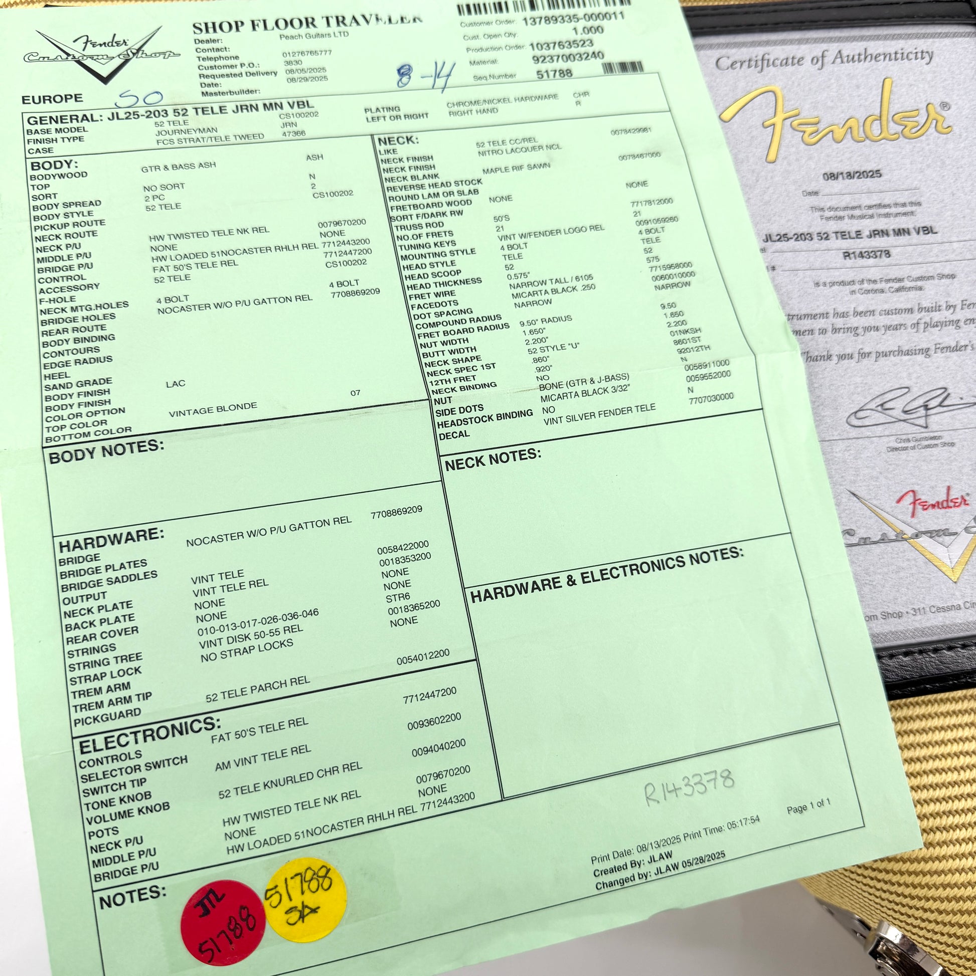 2025 Fender Custom Shop ’52 Journeyman Relic Telecaster – Vintage Blonde