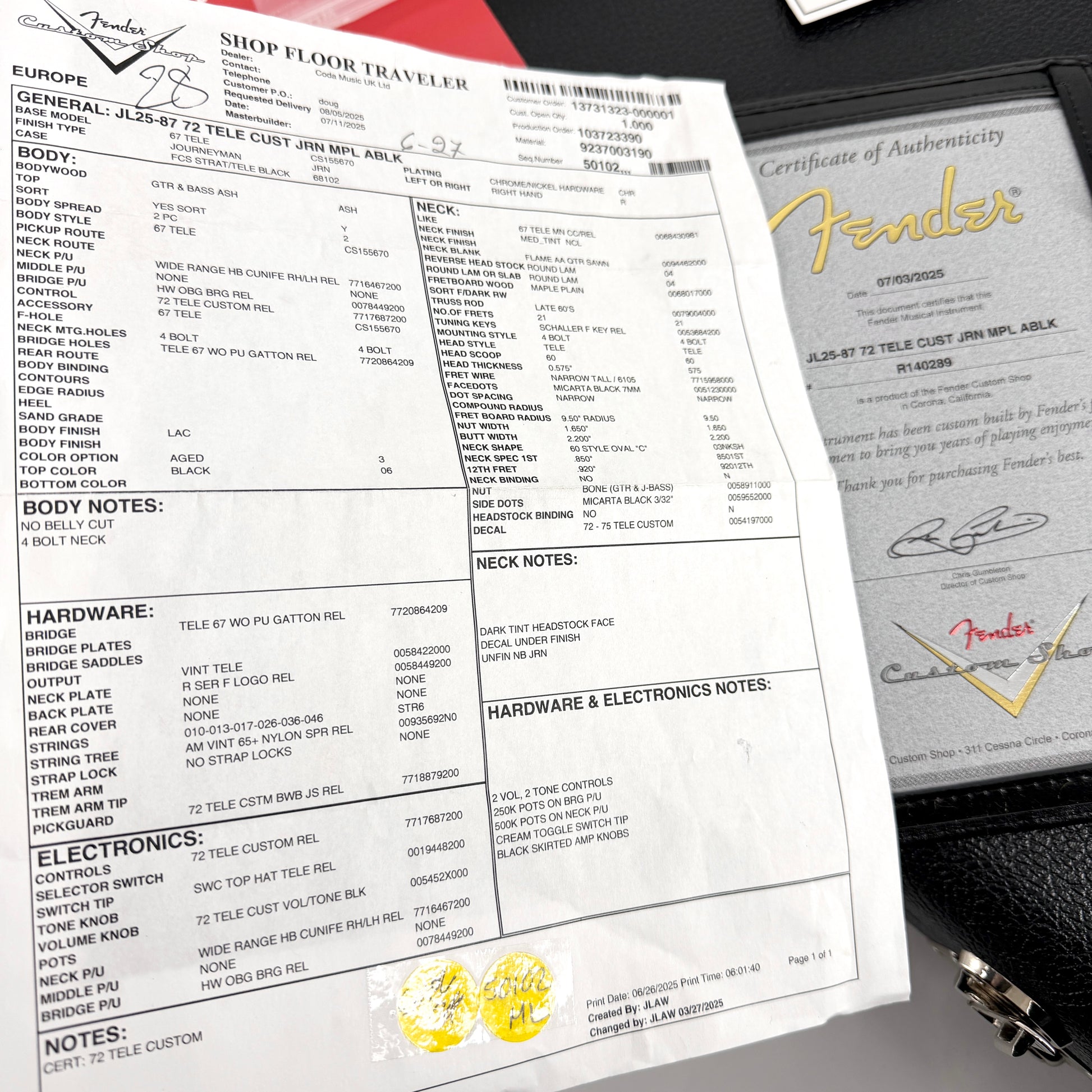 2025 Fender Custom Shop ’72 Custom Journeyman Relic Telecaster – Aged Black