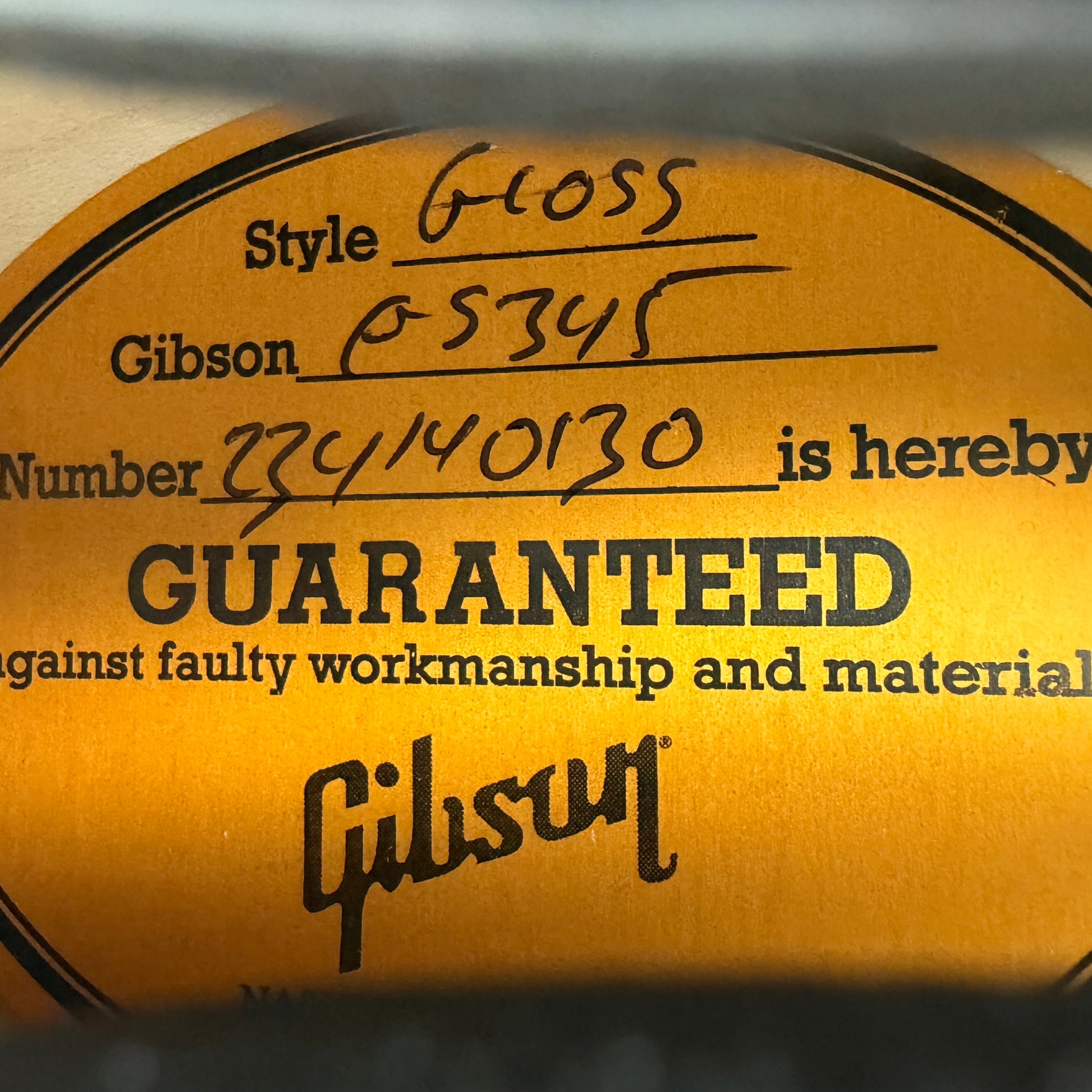 This collectible guitar comes complete with its original Gibson hard case and its paperwork, candy as pictured.
