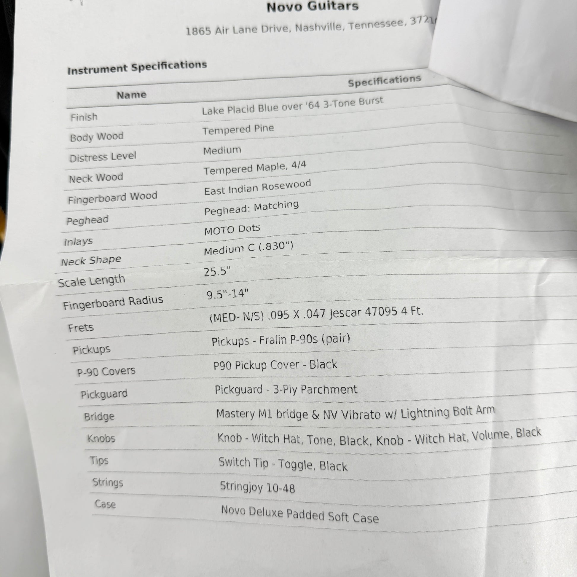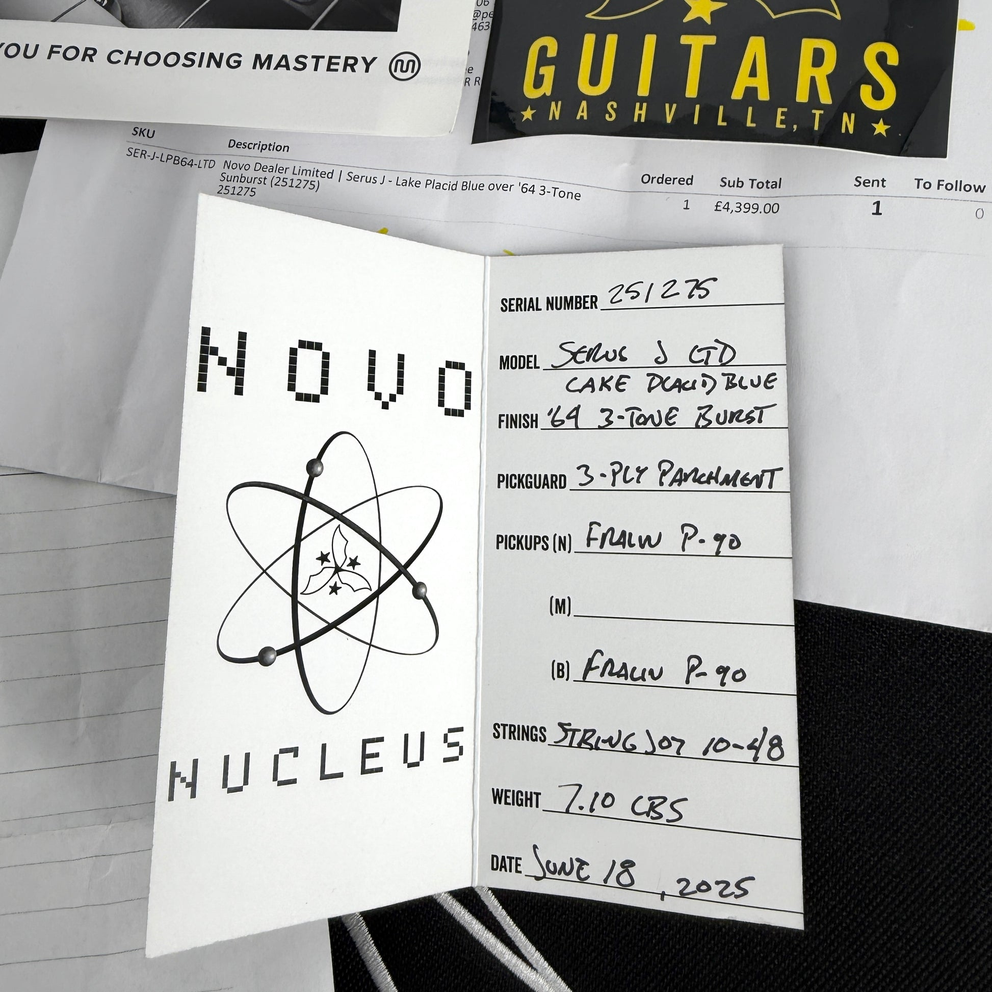 2025 Novo Serus J Limited - Lake Placid Blue over '64 3-Tone Sunburst