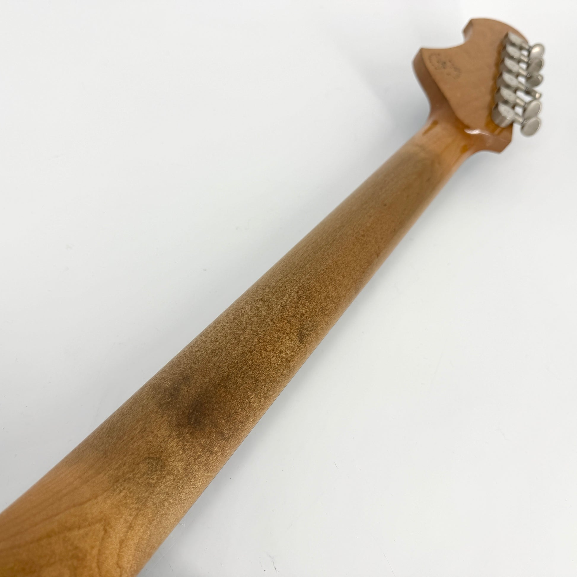 It's crafted from tempered pine, offering a unique tonal character that sets it apart from the crowd. This lightweight and resonant wood contribute to the guitar's overall tonal excellence. The neck, made from tempered maple, complements the body, providing stability and a smooth playing experience. The rosewood fingerboard offers a smooth playing platform with a 9.5"-14" compound radius, Moto dot inlays, and medium nickel/silver frets for the ultimate experience. The Medium 'C' neck carve with a 25.5" scale length ensures a comfortable feel, making it an ideal choice for both seasoned players and those exploring the world of boutique guitars for the first time. The 1.65" nut width provides ample room for intricate playing while maintaining playability for a wide range of musical styles.